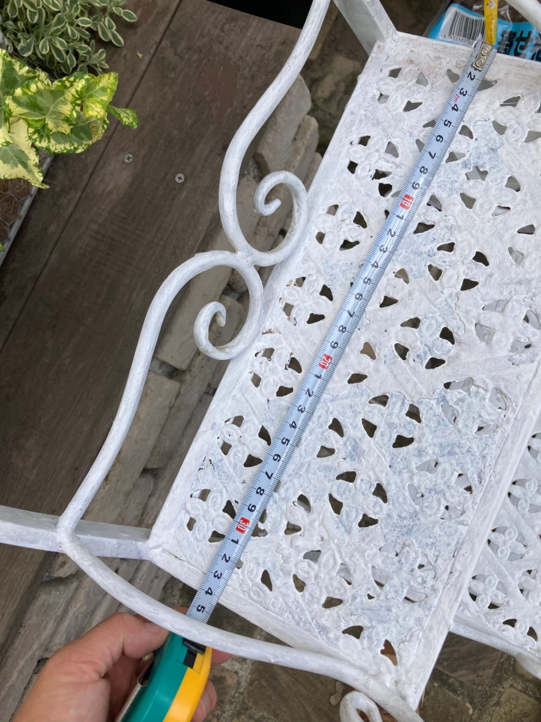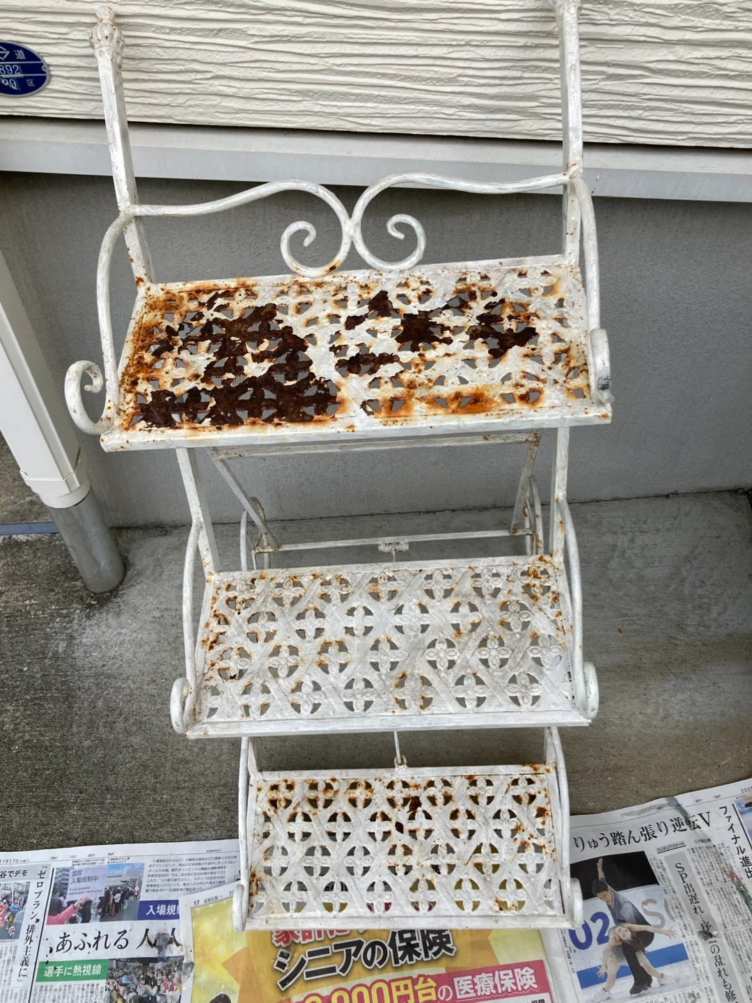 プランターラックです。 多肉植物など置くのにちょうど良い大きさだと思います。 ・全体的に白い塗料が塗られています ・一部錆びている箇所があります 屋外で使用していました。サビがありましたので、ミルクペイントしました。5枚目6枚目の写真はペイント前の状態です。 中古品であることご了承ください。 高さ約71センチ、奥行き約50センチ 幅約34センチ ものを置ける台の内側32センチ× 16センチです。 他のフリマアプリも出品してるので 急に削除する可能性大の商品です。