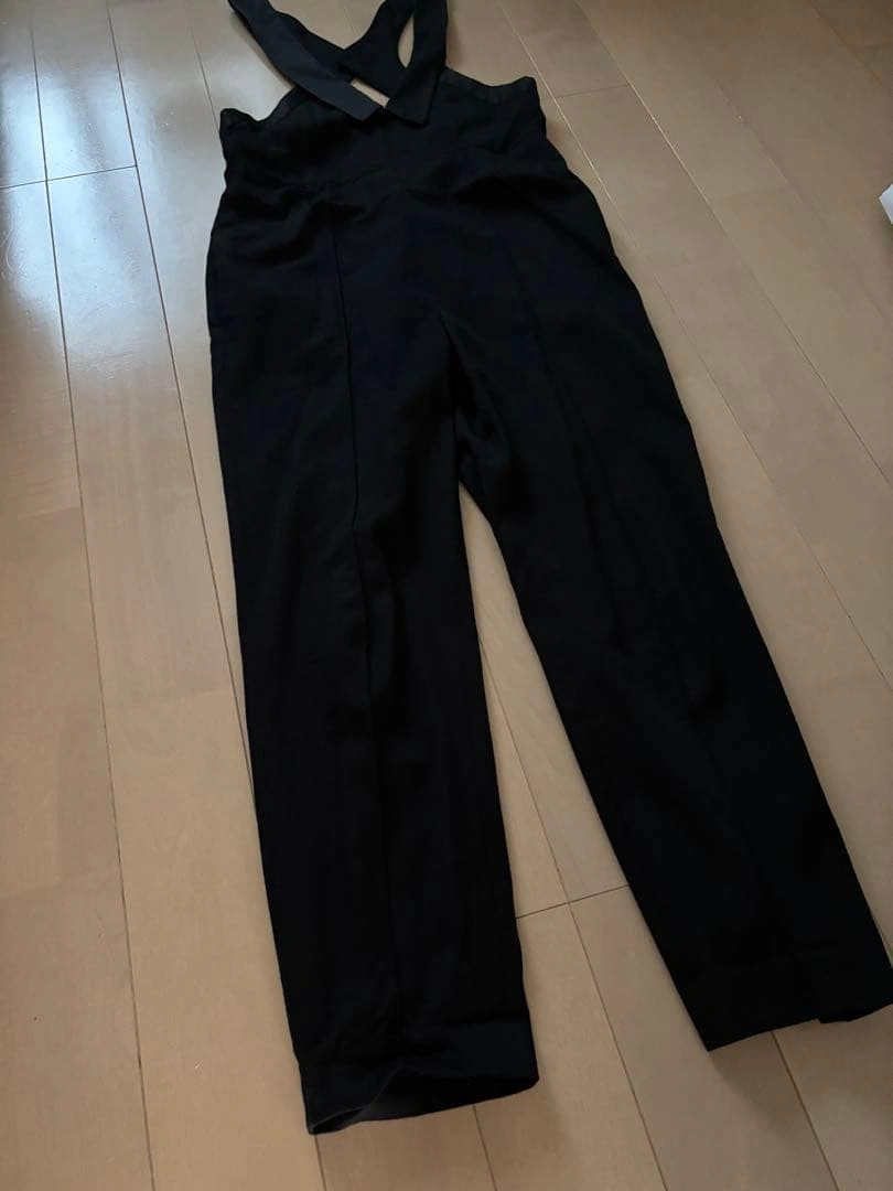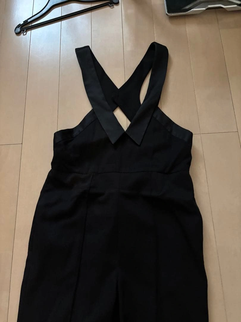 プランピーナッツのオールインワンです。 サイズ:フリー カラー:ブラック 後ろのデザインも可愛いです。 ハンガー跡や裾の折りジワ、全体的にシワがあります。そのため、やや傷ありにしています。 5〜6回着用しています。 自宅保管の中古品にご理解いただける方、よろしくお願いいたします。