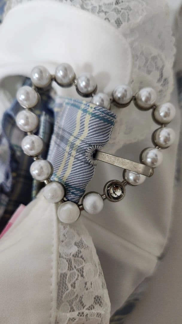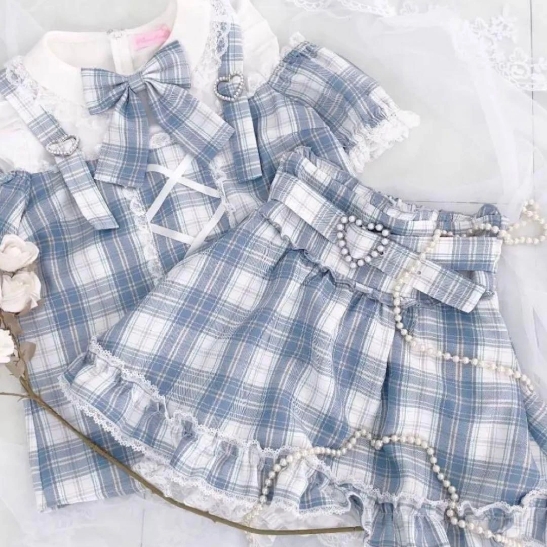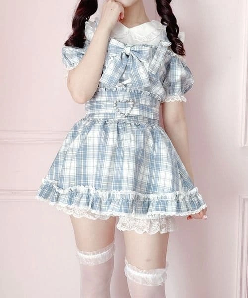 水色 レース ワンピース CATQUEEN 膝丈 リボン 可愛い
