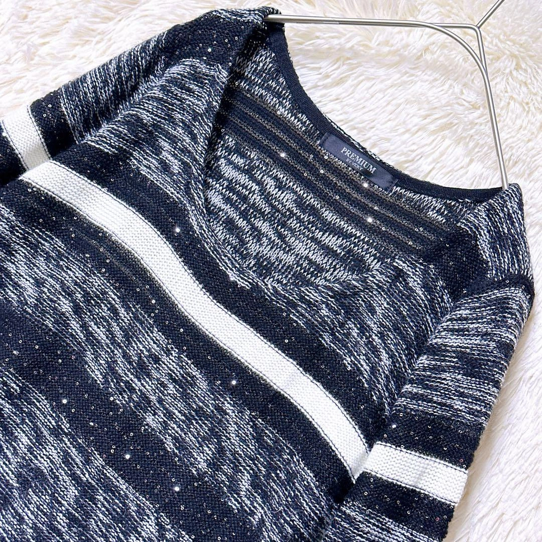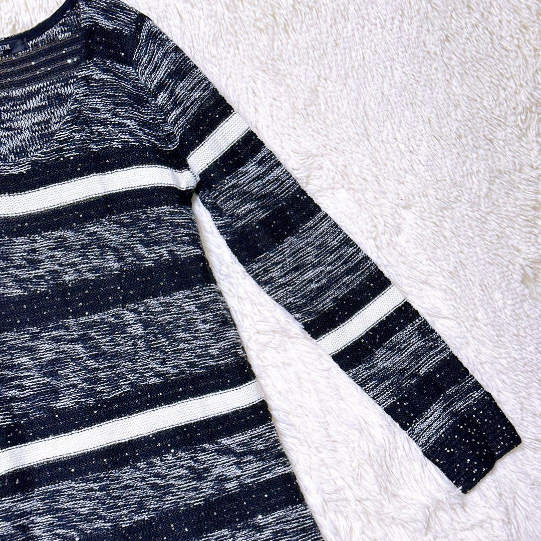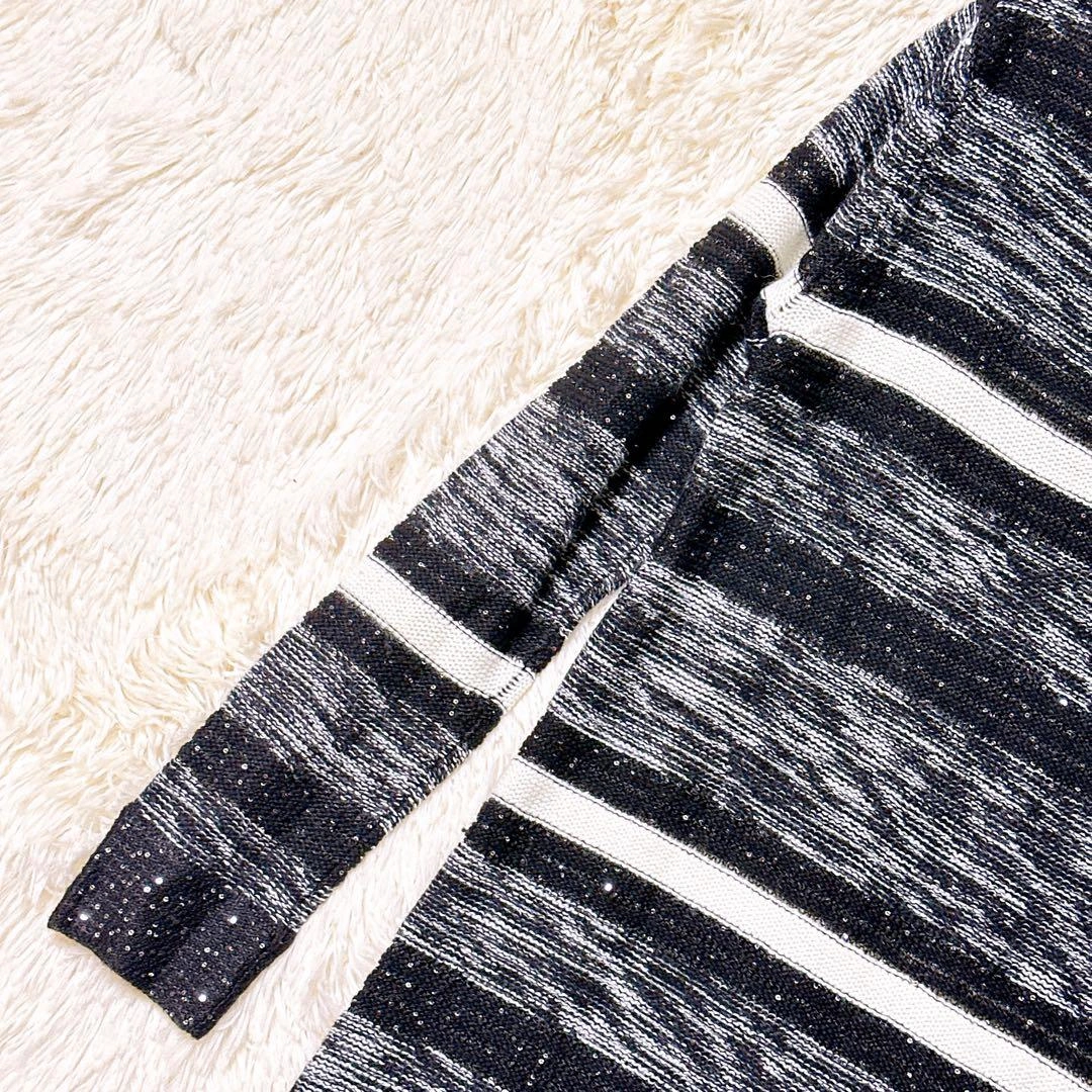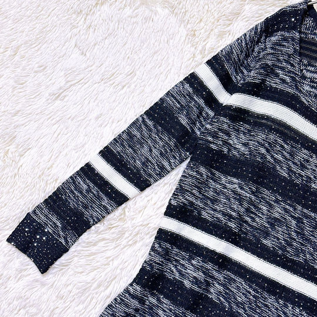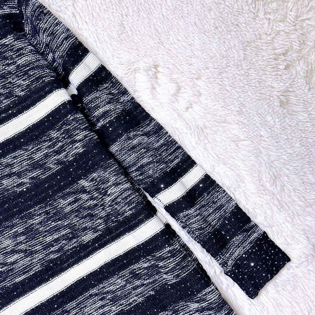 あたたかさPREMIUM BY VICKYのニットです。 ブラックとホワイトのストライプ柄、スラブ編みでラメ入りの素材です。 着丈:103cm 身幅:50cm 肩幅:56cm 袖丈:44cm 素人寸法のため、若干の誤差はご了承ください。 写真にてご確認ください。 カラー···ブラック系 素材···ウール,アクリル/レーヨン(化繊) ネック···クルーネック/Uネック 季節···秋冬 汚れ・破れ・臭いなど···なし ご希望の方はお気軽にご連絡ください。