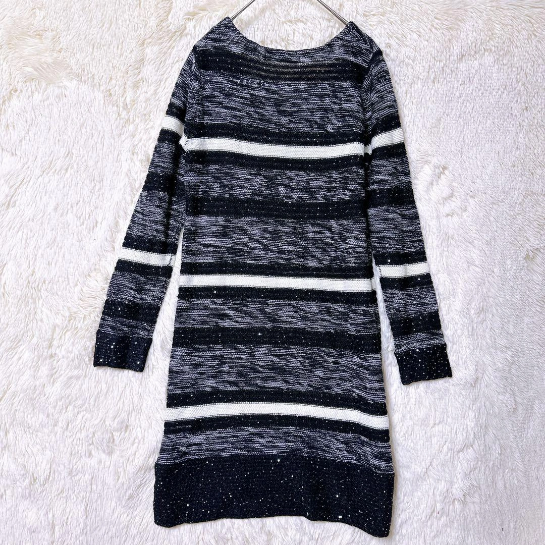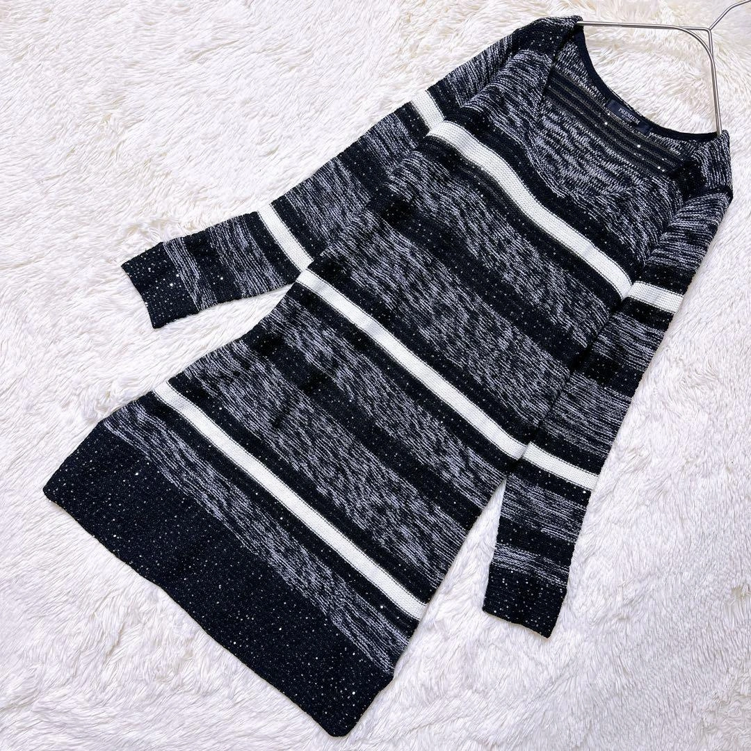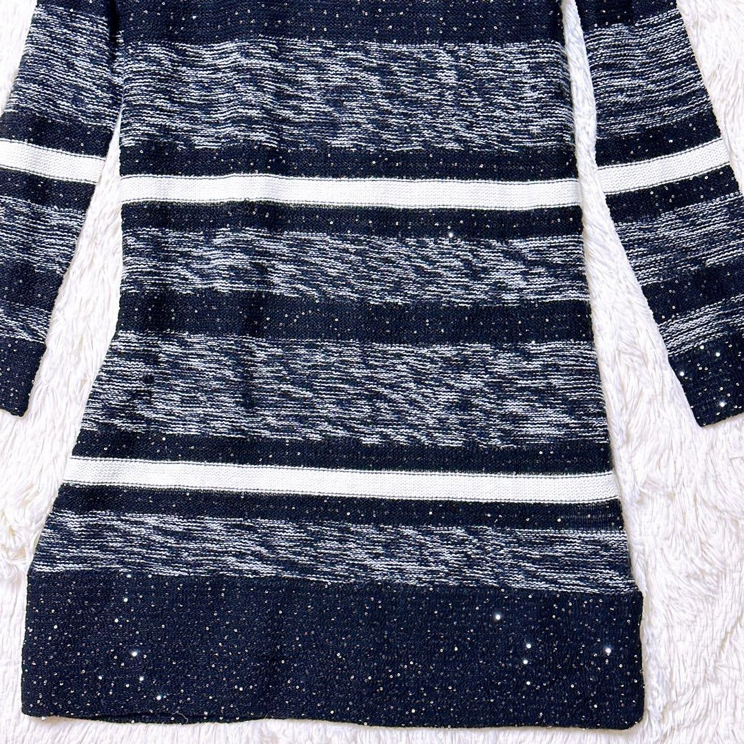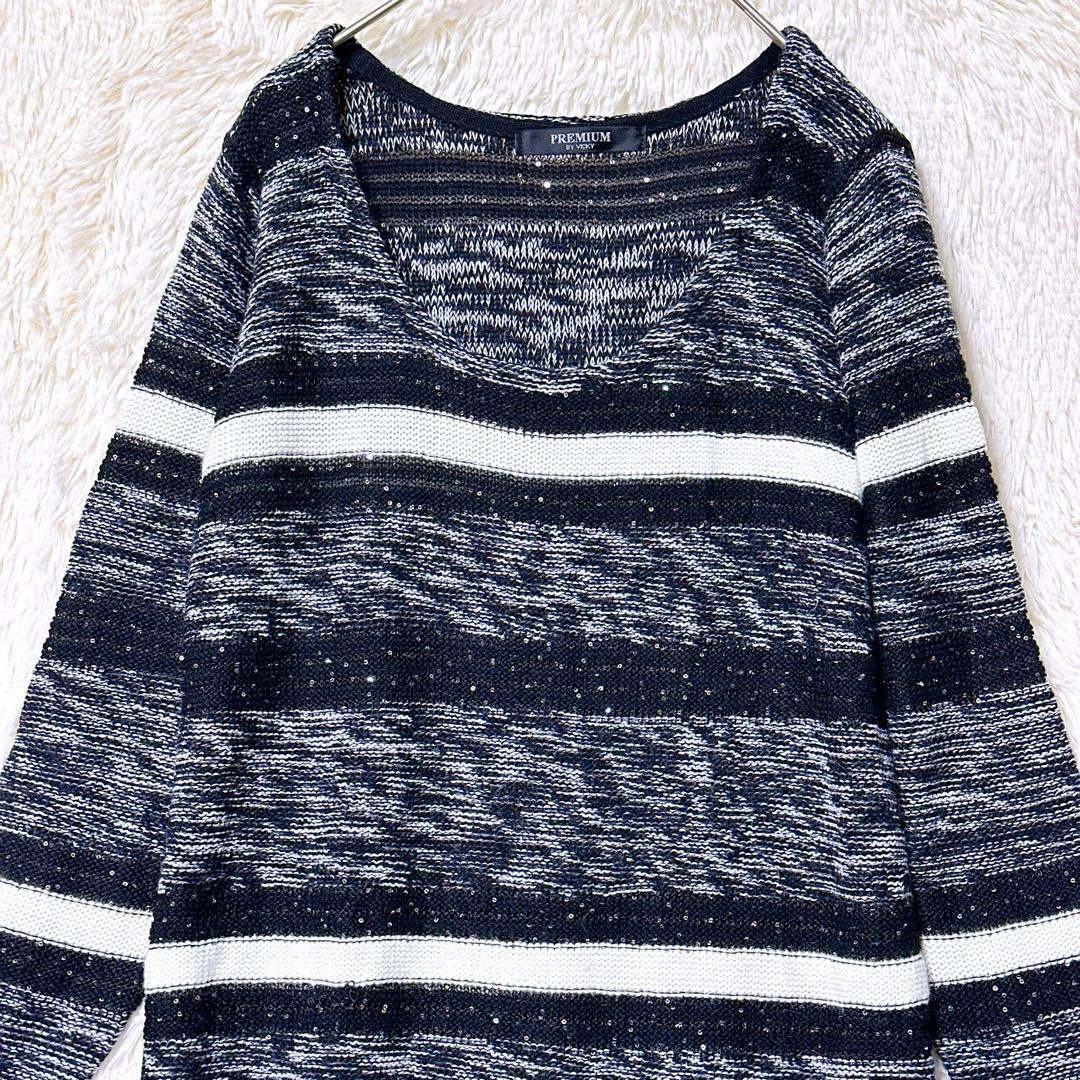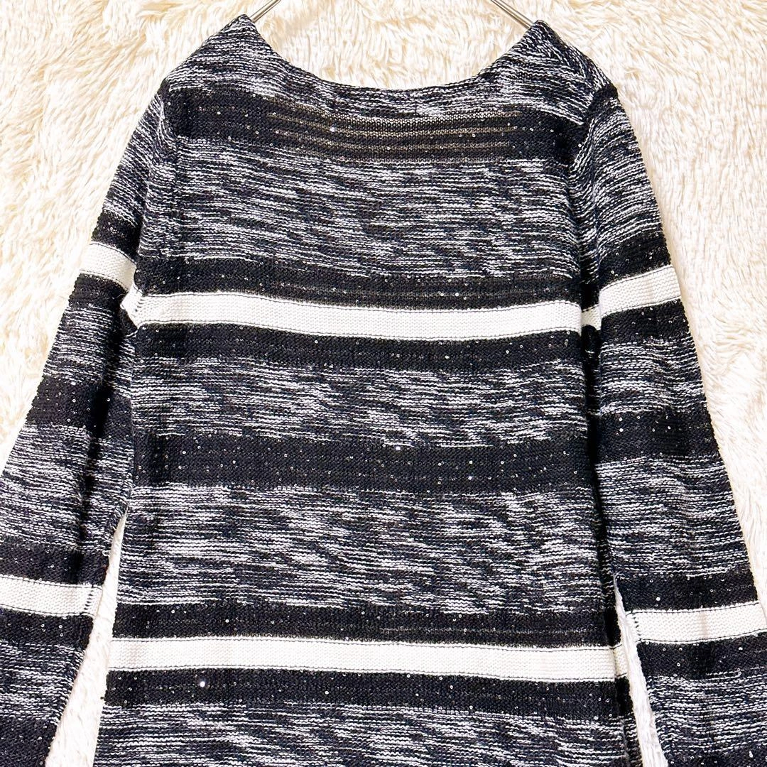 あたたかさPREMIUM BY VICKYのニットです。 ブラックとホワイトのストライプ柄、スラブ編みでラメ入りの素材です。 着丈:103cm 身幅:50cm 肩幅:56cm 袖丈:44cm 素人寸法のため、若干の誤差はご了承ください。 写真にてご確認ください。 カラー···ブラック系 素材···ウール,アクリル/レーヨン(化繊) ネック···クルーネック/Uネック 季節···秋冬 汚れ・破れ・臭いなど···なし ご希望の方はお気軽にご連絡ください。