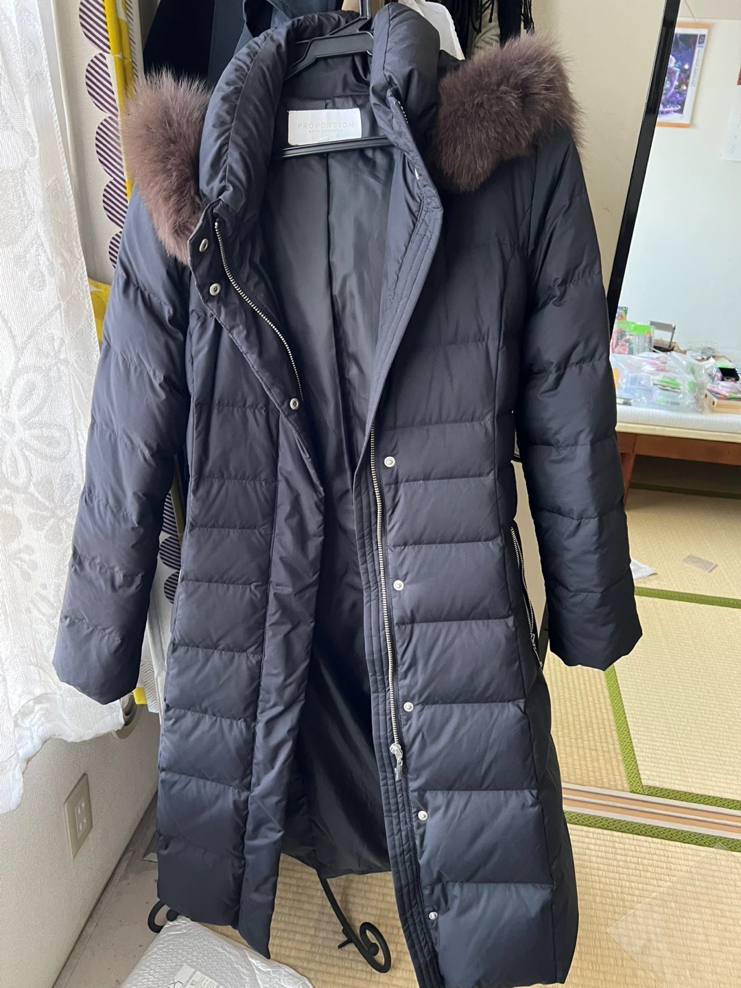プロポーションボディドレッシングのダウンコートです。 ・色:黒 サイズ2 ・ファー付き(フード取り外し可能) ・状態:使用感少なめ ご不明点があればお気軽にお尋ねください。 当方、病気療養中のため、自宅まで取りに来てくださる方は、20%お値引きいたします。