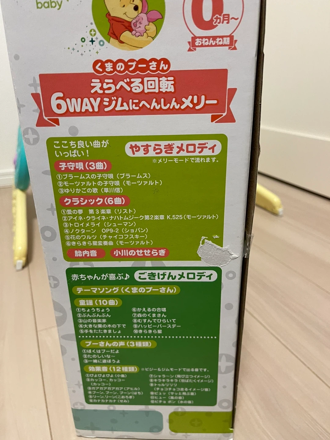 大人気のプーさんメリーです。 2年半程使用しました。 目立った傷や汚れはは無いかと思いますが、 使用期間相当のものではあります。 部品や説明書、箱有ります。 箱は一部紙が剥がれております。写真でご確認ください。 中古商品であることをご理解頂き ノークレームノーリターンでお願い致します。