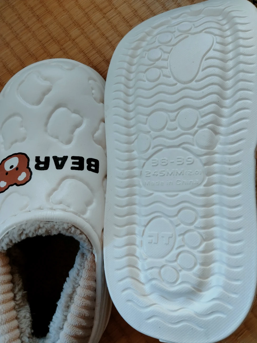 内側が起毛のルームシューズです。 ・サイズ:38-39(24.5cm相当)と記載がありますが、実際には36位です。 私は24cmですが、ピタピタで履きずらいので出品します。 軽いですが、底も厚いのでベランダで使おうと思い購入しました。室内履きには少し バタバタするかなと思います。 ・カラー:アイボリー ・内側はボア素材 ・中国製 未使用ですが、中古品であることご了承ください。