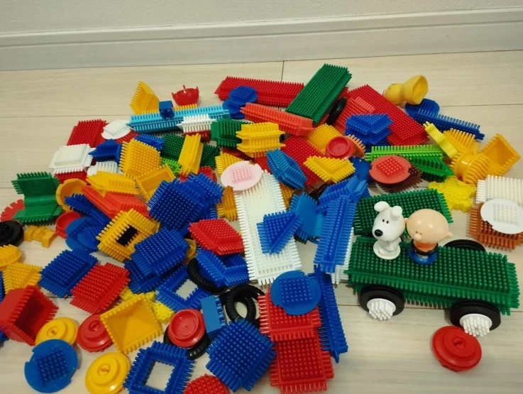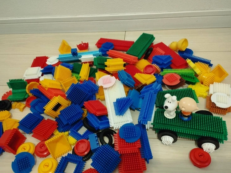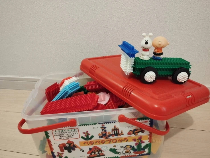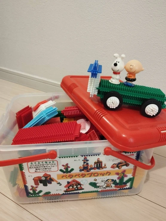 ベタベタブロックです。 どの方向からでもペタペタとくっつけて、 直感的で自由な創作が楽しめます。 対象年齢3歳以上 箱の片方が壊れてます。 中古品になるため気にされる方はご購入をお控えください。