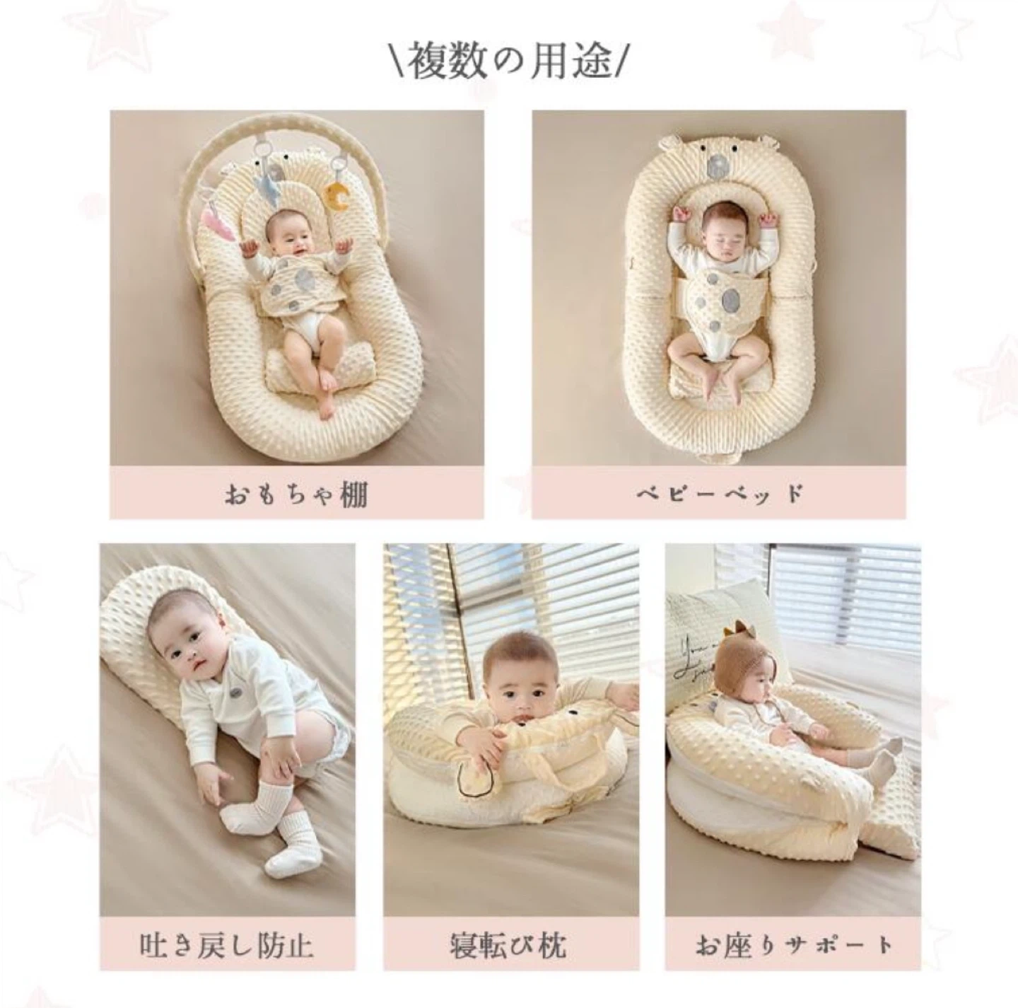 授乳クッション ベージュ 星柄