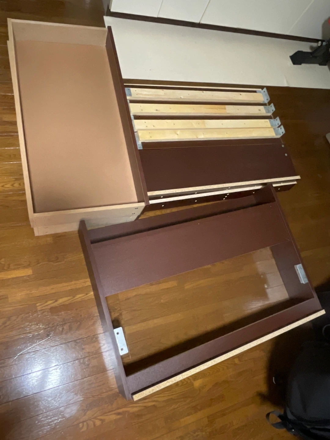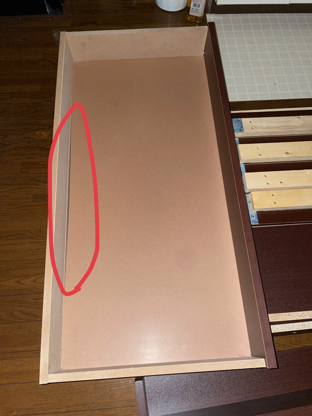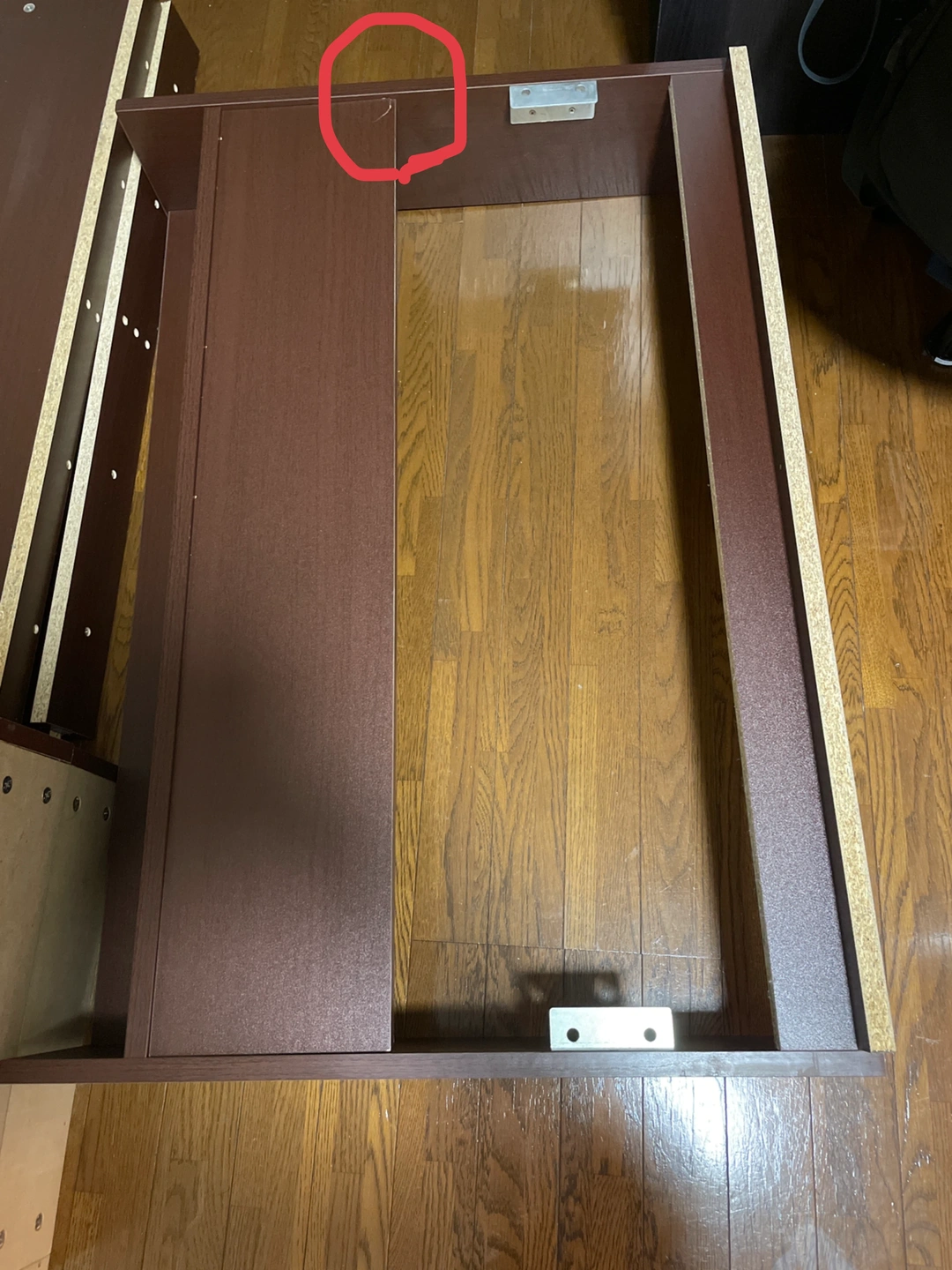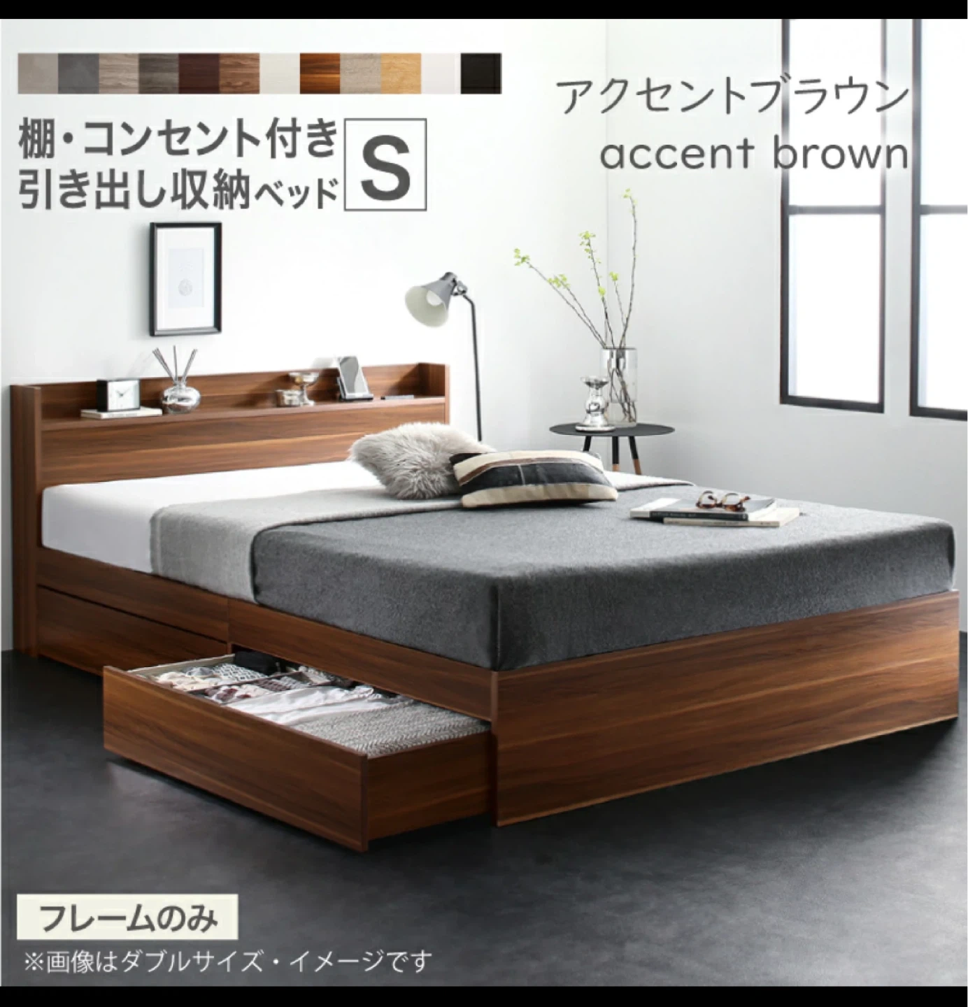 ベッドフレームです ・カラー:アクセントブラウン ・サイズ:シングル ・棚・コンセント付き ・引き出し収納ベッド ・フレームのみ 4年ほど使用して引っ越し先で使わなくなったため出品します。 まだまだ問題なく使用できるとおもいます。 引越しの際に分解した状態となっております。 説明書、組み立て用のネジ等も付いています。 中古品のため、クレーム、返品は受け付けておりません。 目立つ傷はございませんが、気づいた箇所は写真に赤丸で示しております。 割れている箇所がございます。使用する際は問題ございません。(4枚目) 収納の板がずれています。収納していた物の重さでずれたと思われます。(5枚目)