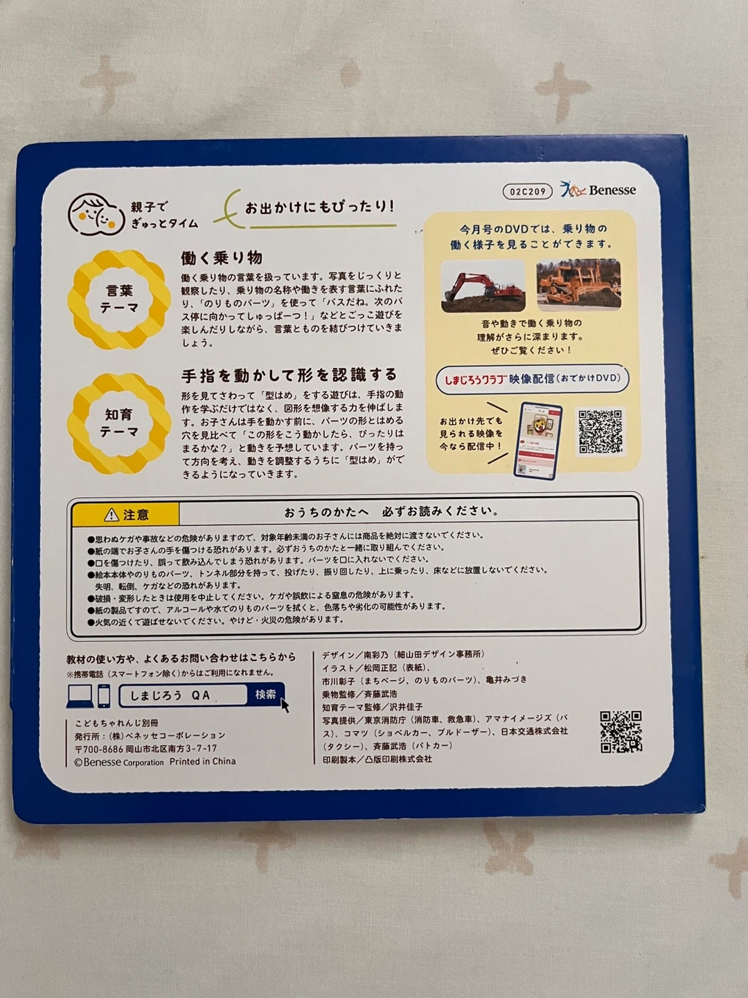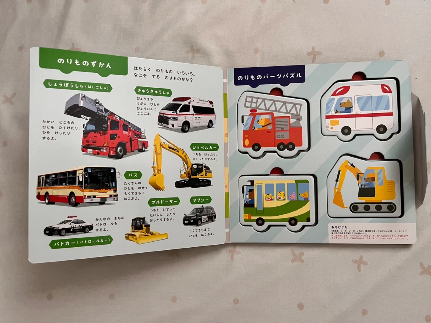 ベネッセの知育絵本です。 本を広げるとトンネルまでできて、遊べます。 持ち運びにも便利です。 ・乗り物の絵柄 ・パズルとして遊べます ・対象年齢1-2歳用 中古品であることをご了承ください。