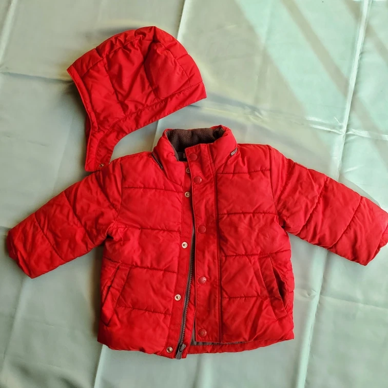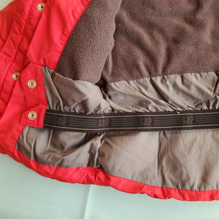 ベビーギャップのアウターです。 ・ブランド:ベビーギャップ ・サイズ:12-18ヶ月 ・カラー:赤 ・フード取り外し可能 袖、ポケット部分に汚れあり。 内側でもとめることができ、袖も二重になっており機能性◯ 子供の使用品になります。 ご理解の上、ノークレーム・ノーリターンでお願いします。 名前の記載があります。お渡し時ぬりつぶしてのお渡しをさせていただきます。 ご不明あればご連絡ください。