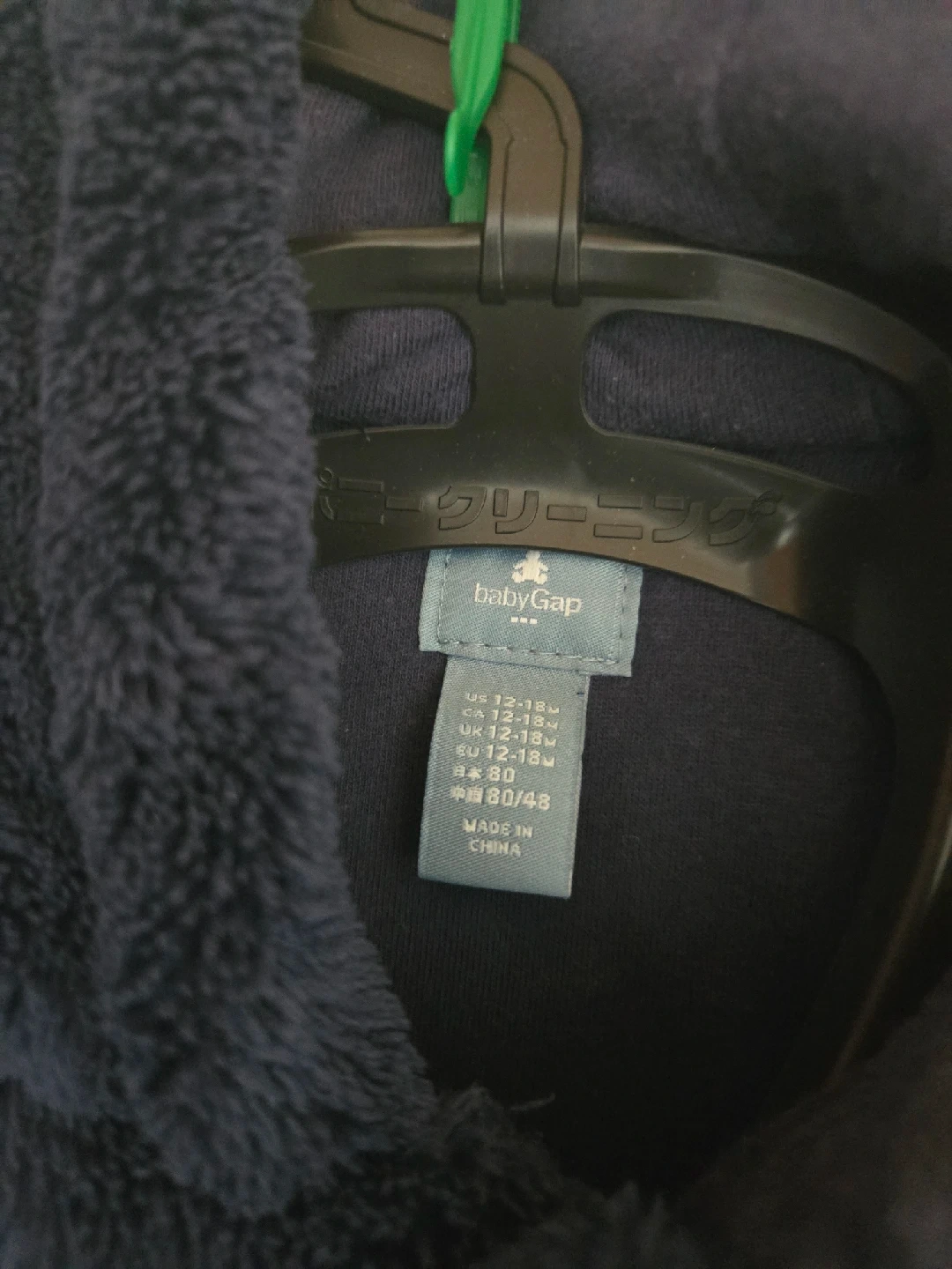 ベビーギャップのアウターです (set) Top+pants ・ブランド:ベビーギャップ ・サイズ:80 ・カラー:紺色 ・状態:使用感少なめ 中古品であることご了承ください