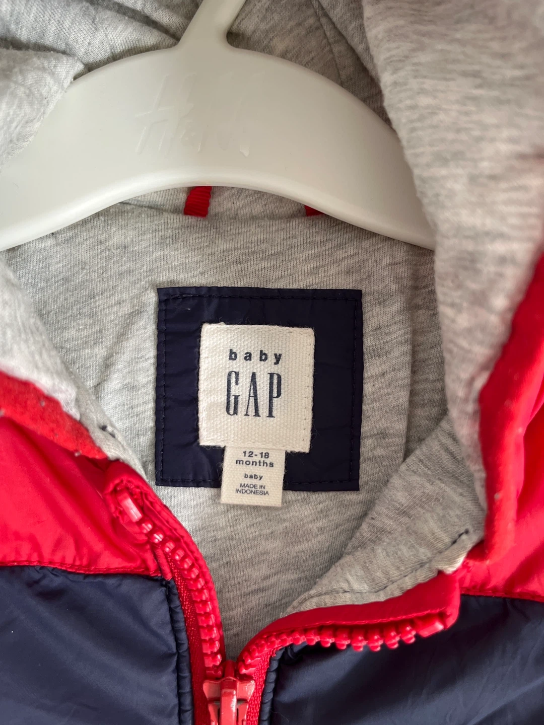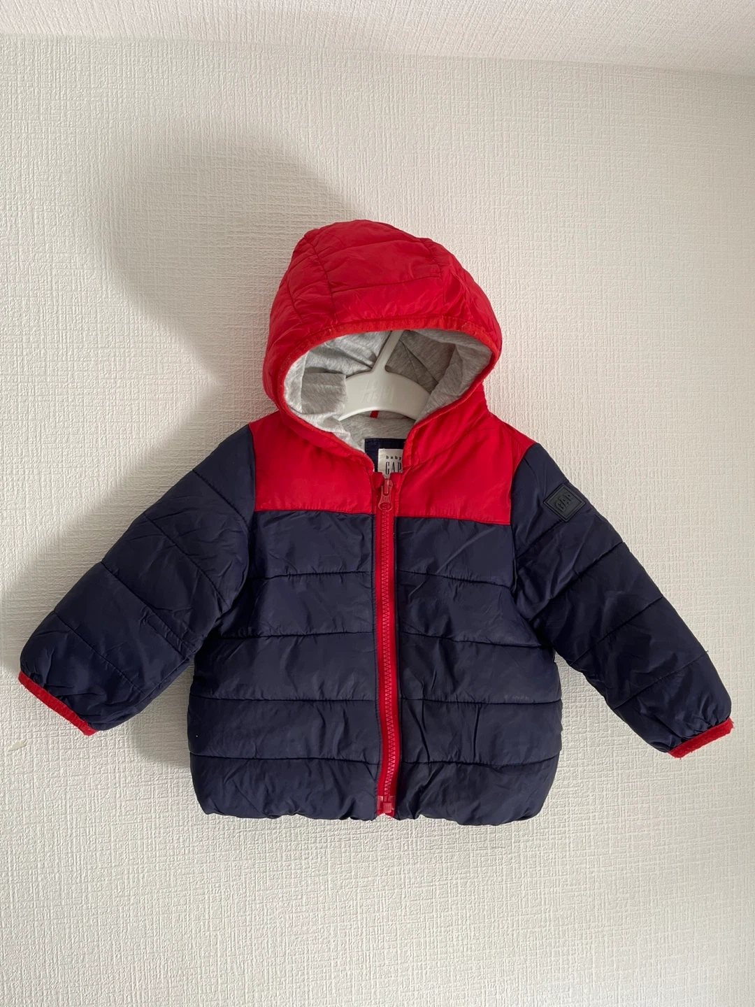 あたたかさベビーギャップのダウンジャケットです。 ・ブランド:ベビーギャップ ・サイズ:12-18 months 80cm ・色:ネイビー、レッド ・状態:使用感それなりにあります