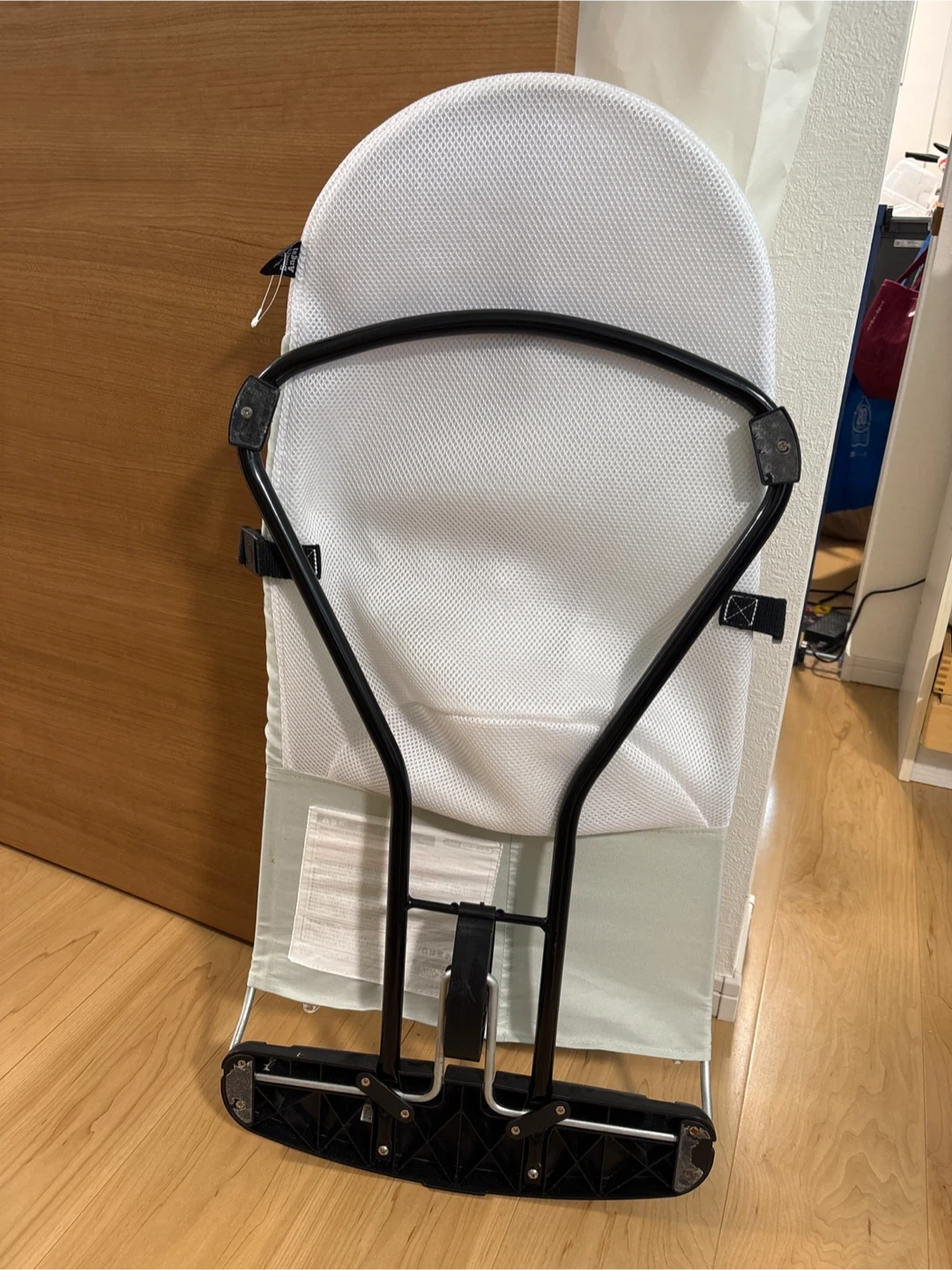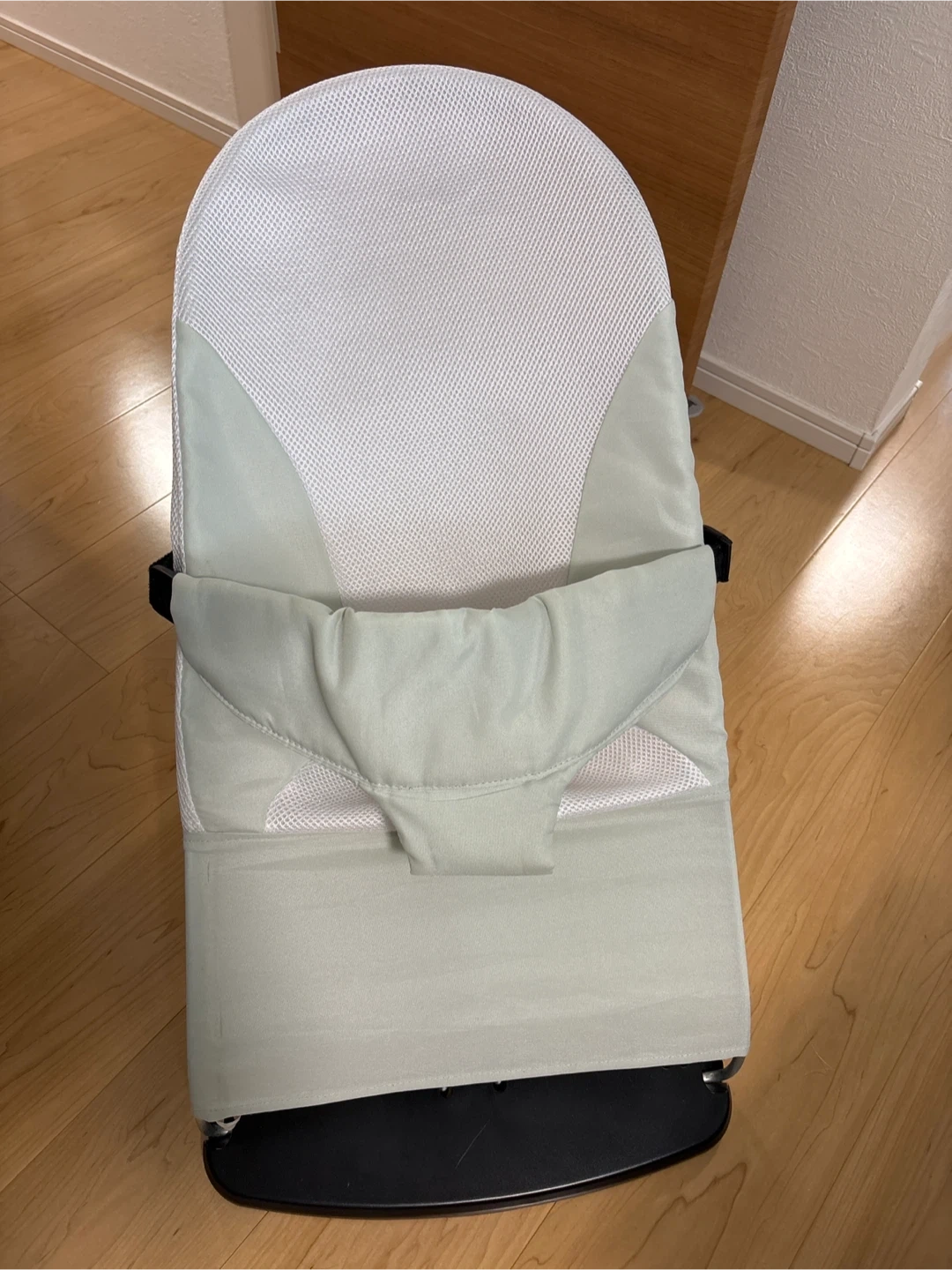ベビーバウンサーです バウンサーの高さ調整が3段階できます。 折りたたみ収納て、使わないときは隙間にしまっていました。 ・色:白、薄緑 ・使用感少なめ ・全体的にきれい 中古品であることご了承ください