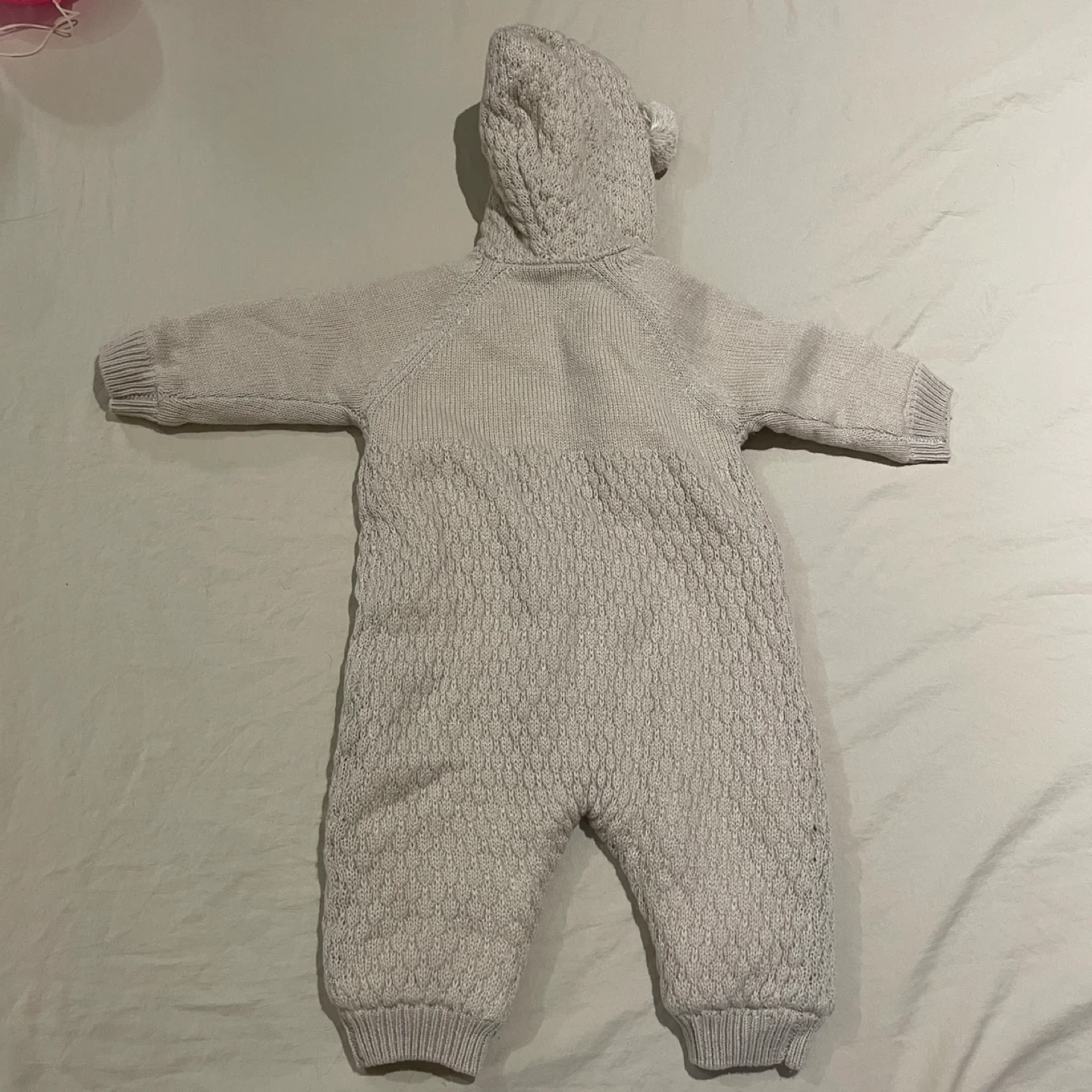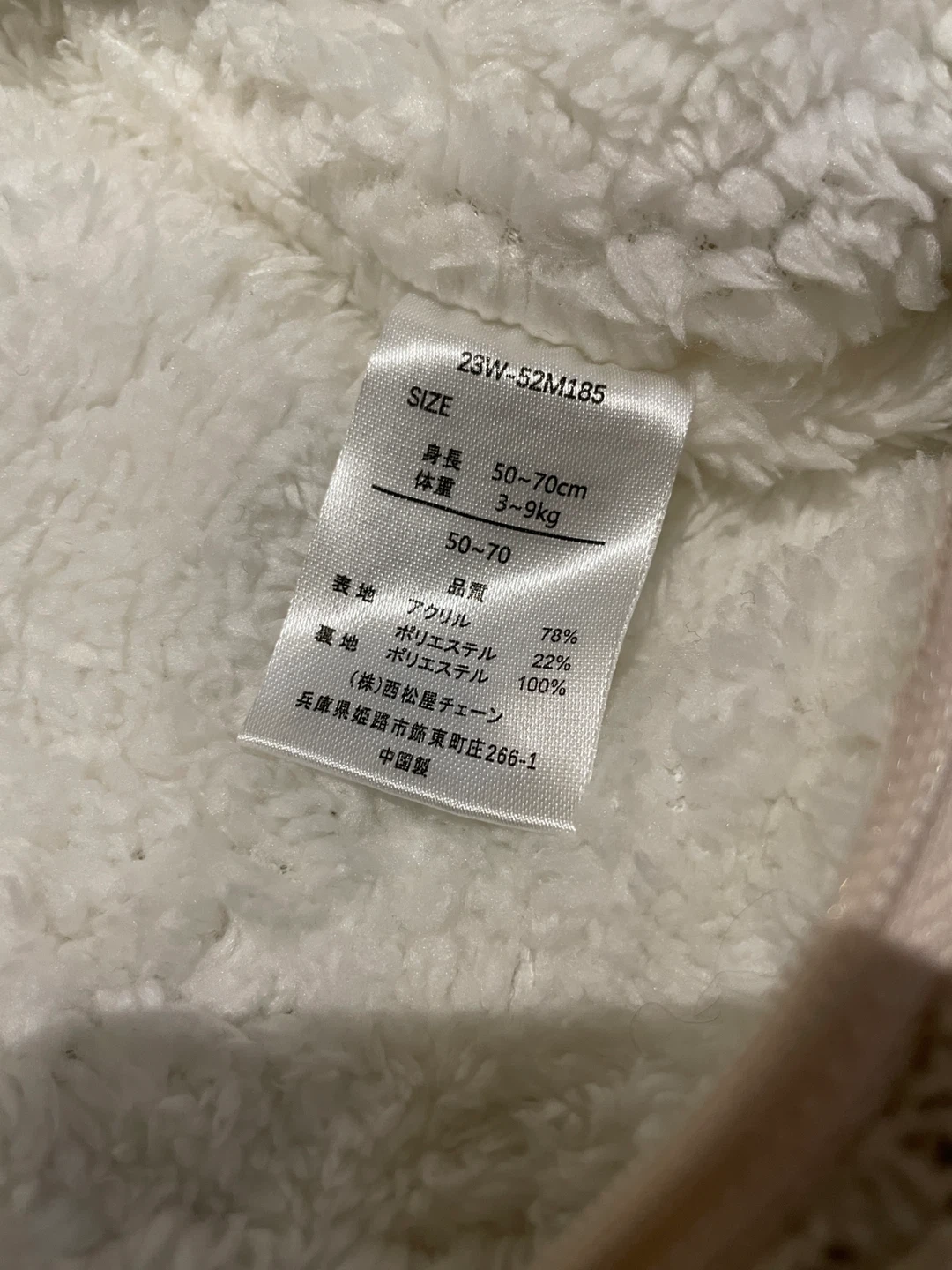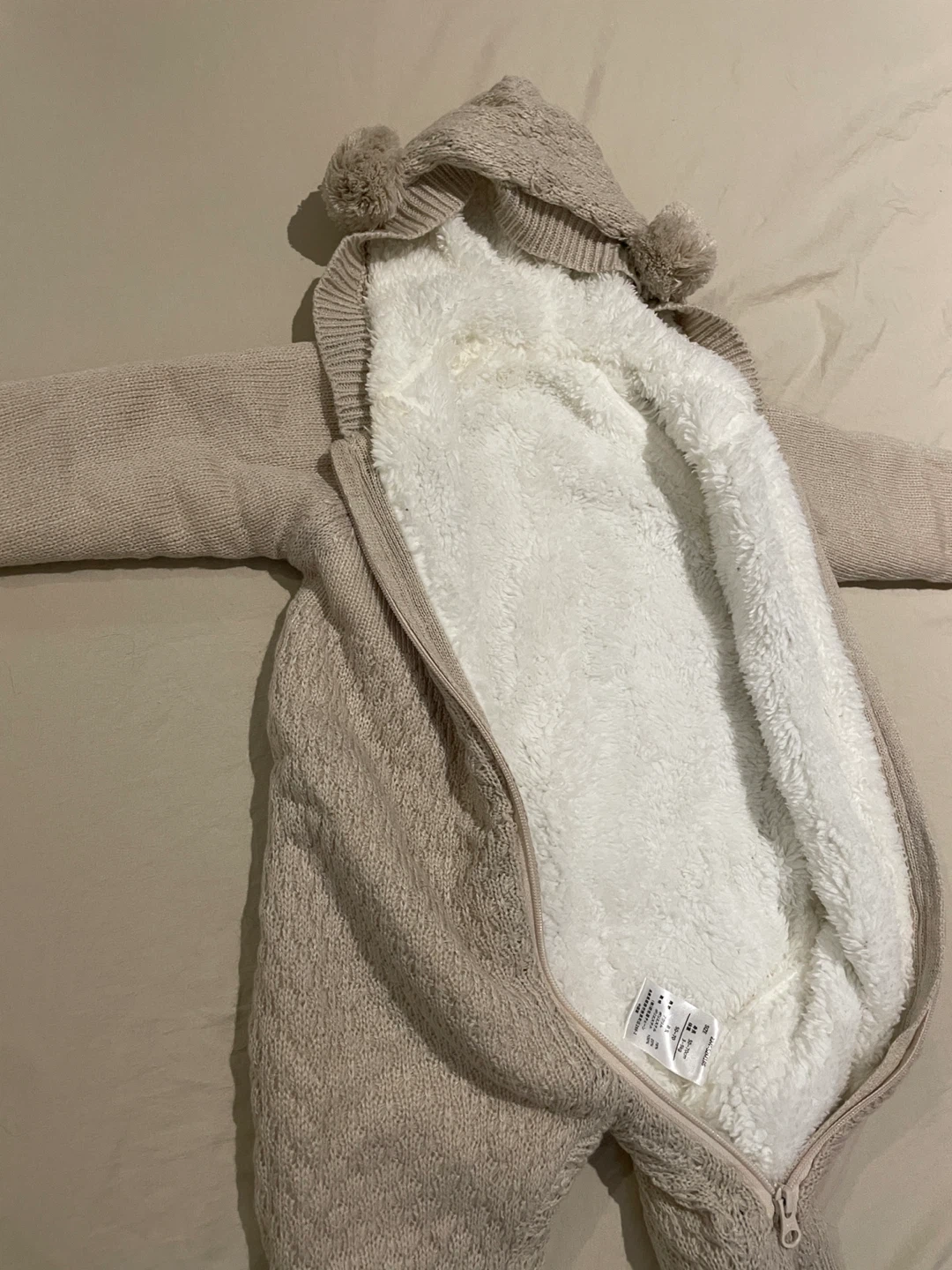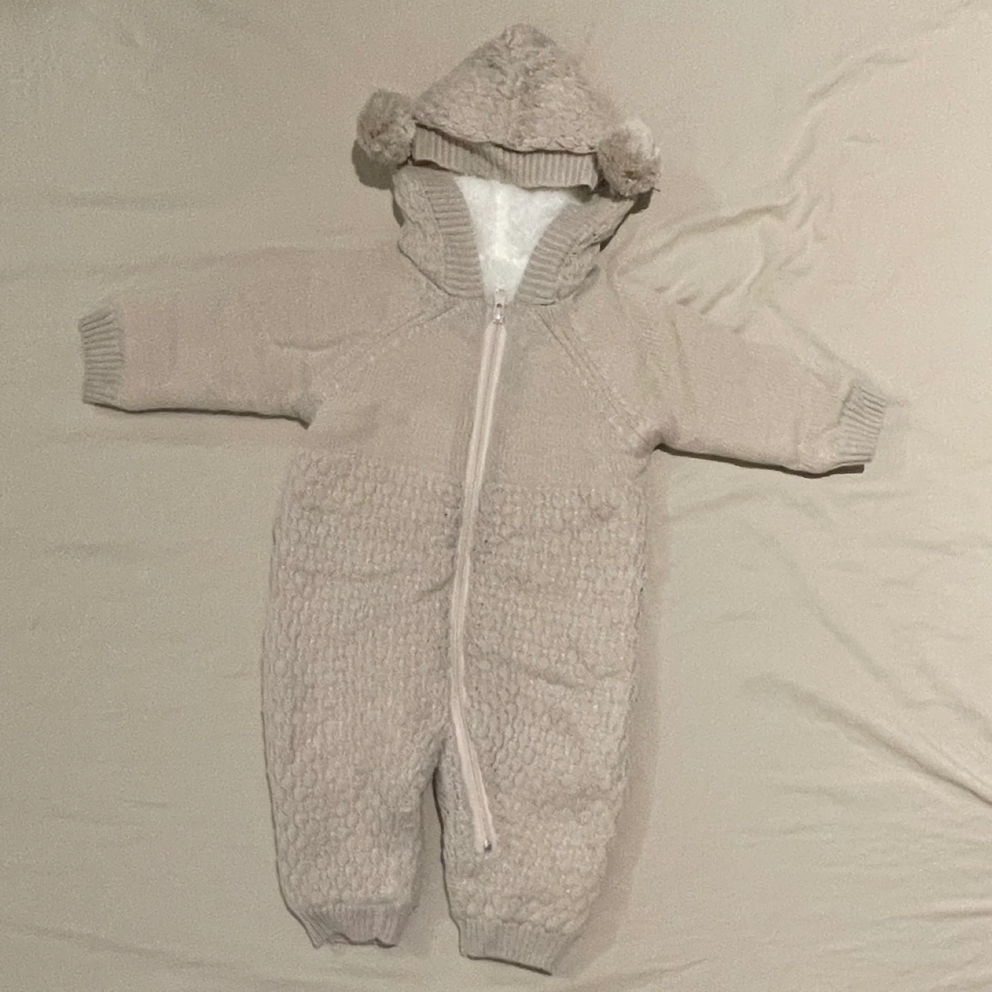 ベビー服のカバーオールです。 もこもこ耳付きでとっても可愛かったです! 大事にしすぎて出番少なめでした笑。 使っていただける方に。 ・サイズ:50~70cm ・体重:3~9kg ・色:ベージュ ・素材:アクリル、ポリエステル ・使用感少なめ 中古品であることご了承ください