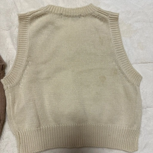 どちらも80のニットベストです。 写真左のものはボタン部分にほつれがあります。 写真右のものは背中にシミがあります。 どちらもまだまだ使えると思います! 中古品が気にならない方お問い合わせお待ちしております。