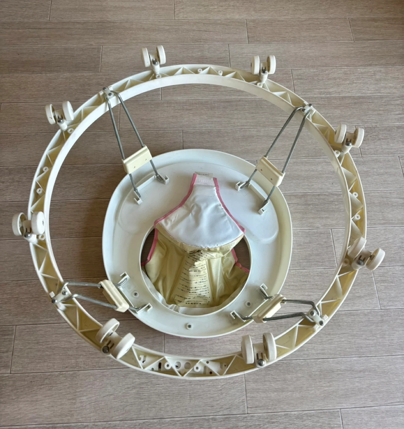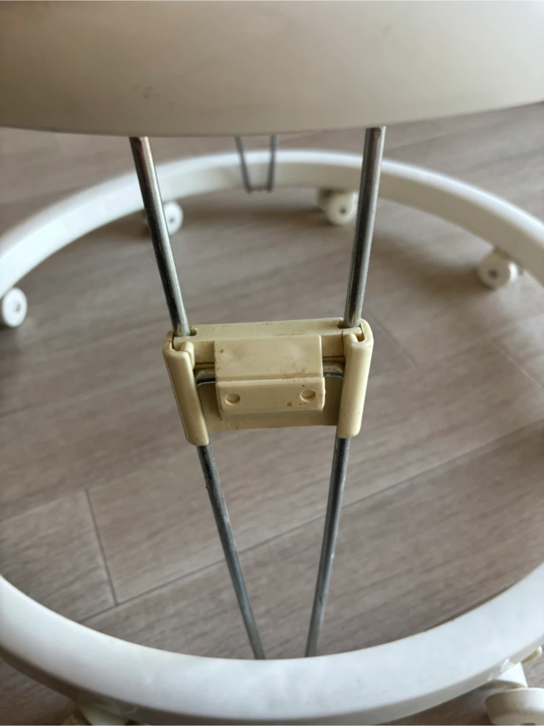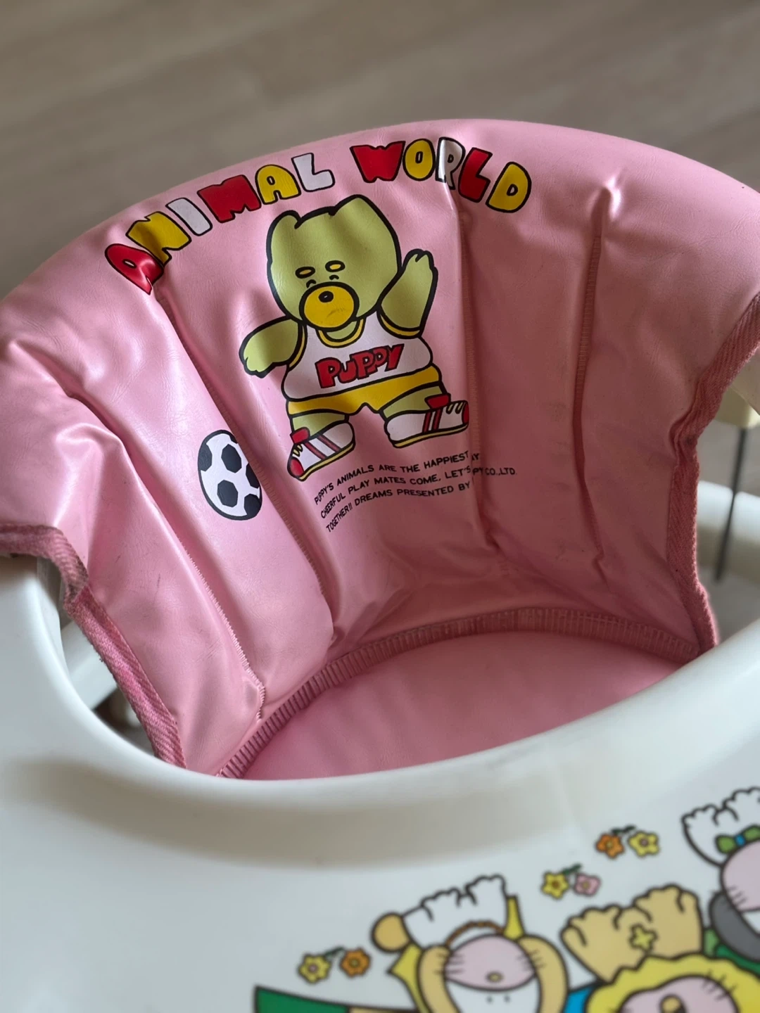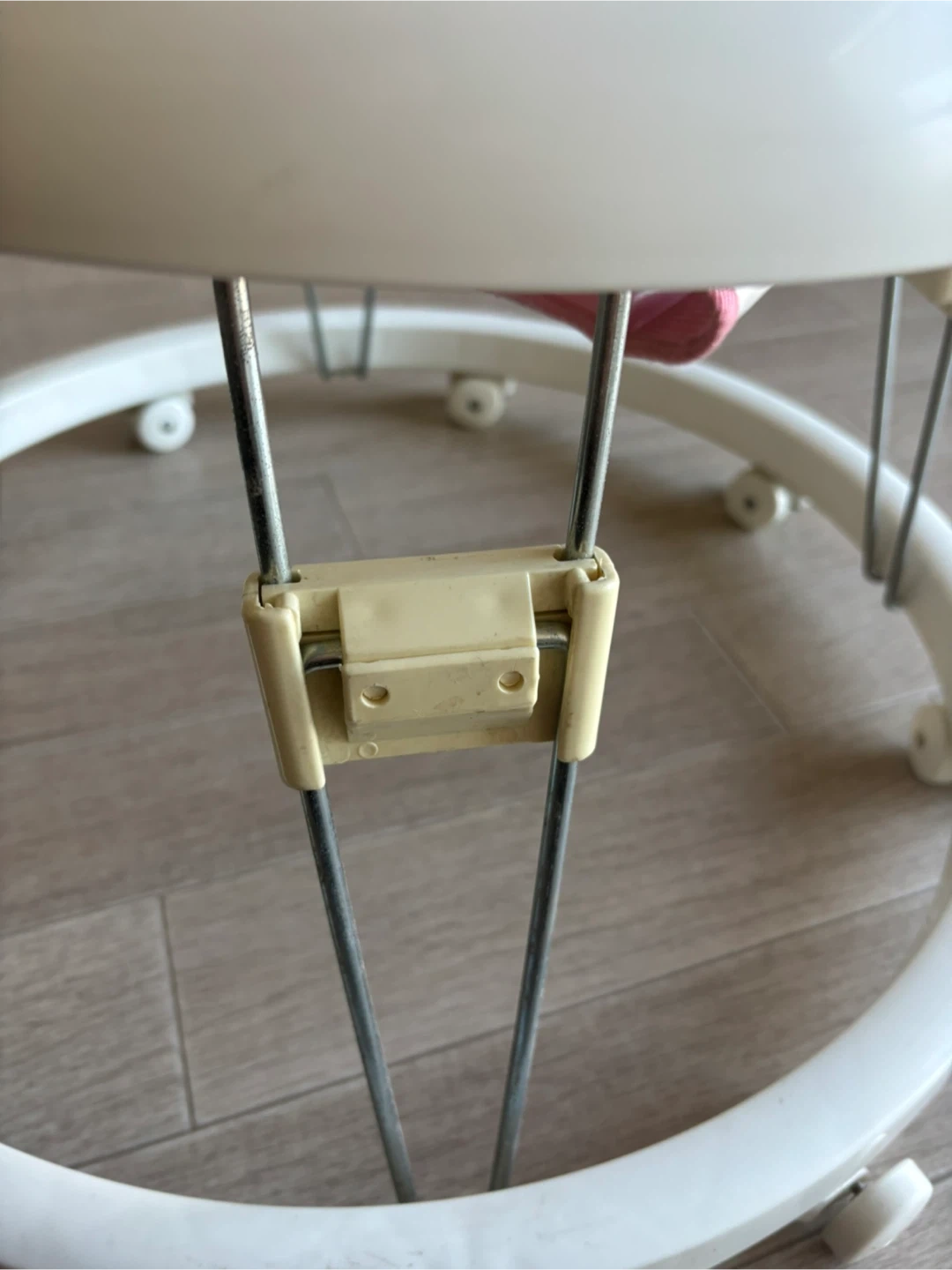 動物テーマのデザインで、サポートクッション付きの歩行器。ベビーチェーアがわりに使っていました。折りたたみ式です。 横幅  約60センチぐらい/一番大きな部分 高さ  約38センチぐらい/車輪含む 自宅保管品、中古品になります。酷いダメージ、壊れはないですが、小さなキズ、スレ、くすみ、金属部のくすみなどあります。 ご理解ある方にお譲りいたします、 - モデル名: Animal World 歩行器 - 色: ホワイト/ピンク - 特徴: サポートクッション付き - タイプ: 歩行器 - 素材: プラスチック/布 - デザイン: 動物テーマ - ホイール: 4つのキャスター付き ご覧いただきありがとうございます。 #ベビー #歩行器 #赤ちゃん #ベビーグッズ #補助 #歩行補助