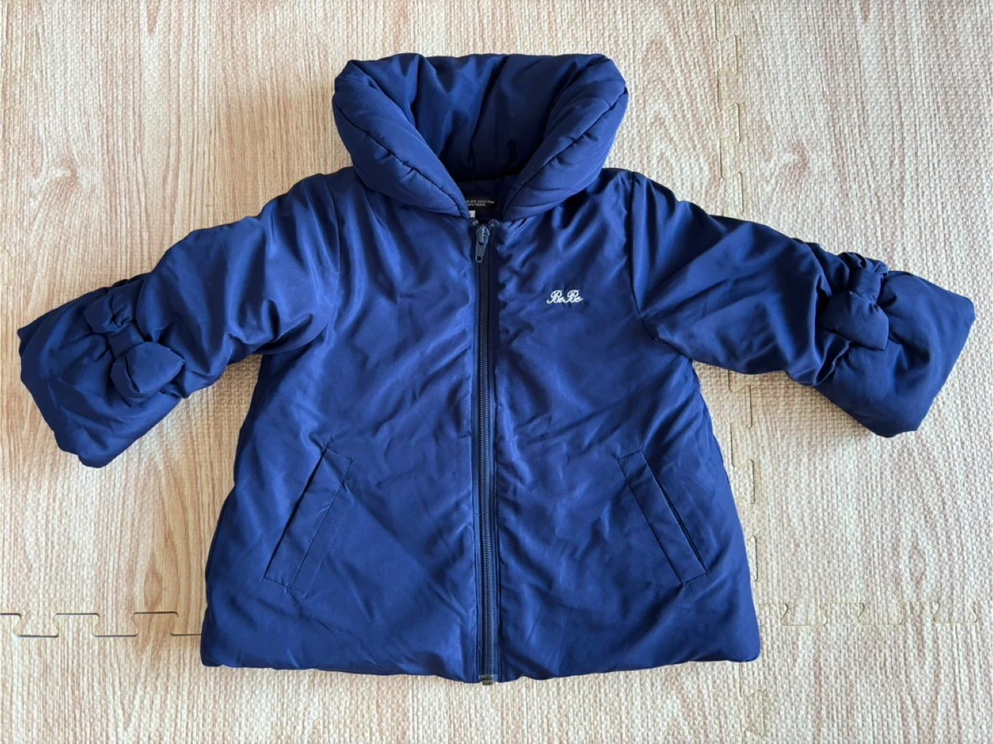 ベベのアウターです。 サイズアウトした為出品します。 ・サイズ:90 ・色:ネイビー(写真だと青っぽく写っていますが、綺麗なネイビーです) ・袖にリボン状のデザイン ・ブランド:BeBe 手首部分がリブになっており、冷たい風も入りにくくなっています。 主にお出かけの時に着用しており、公園等の普段使いはほぼしていないので、特に目立つ汚れやほつれはないと思いますが、あくまで中古品であることをご了承ください。