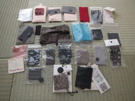 ペイトンプレイス、フランドル、パステルマム、バツ、JUNなどのボタン、端切れ等です。 買った時についていたものを持っていましたが、もう着ていたもの自体が譲ったりしてなかったりするので使うこともないと思い、出品しました。くるみぼたんなどかわいいものもあります。元々2万以上のものの端切れもありますので、お使いになる方はぜひ。 ご希望の方はお気軽にご連絡ください。