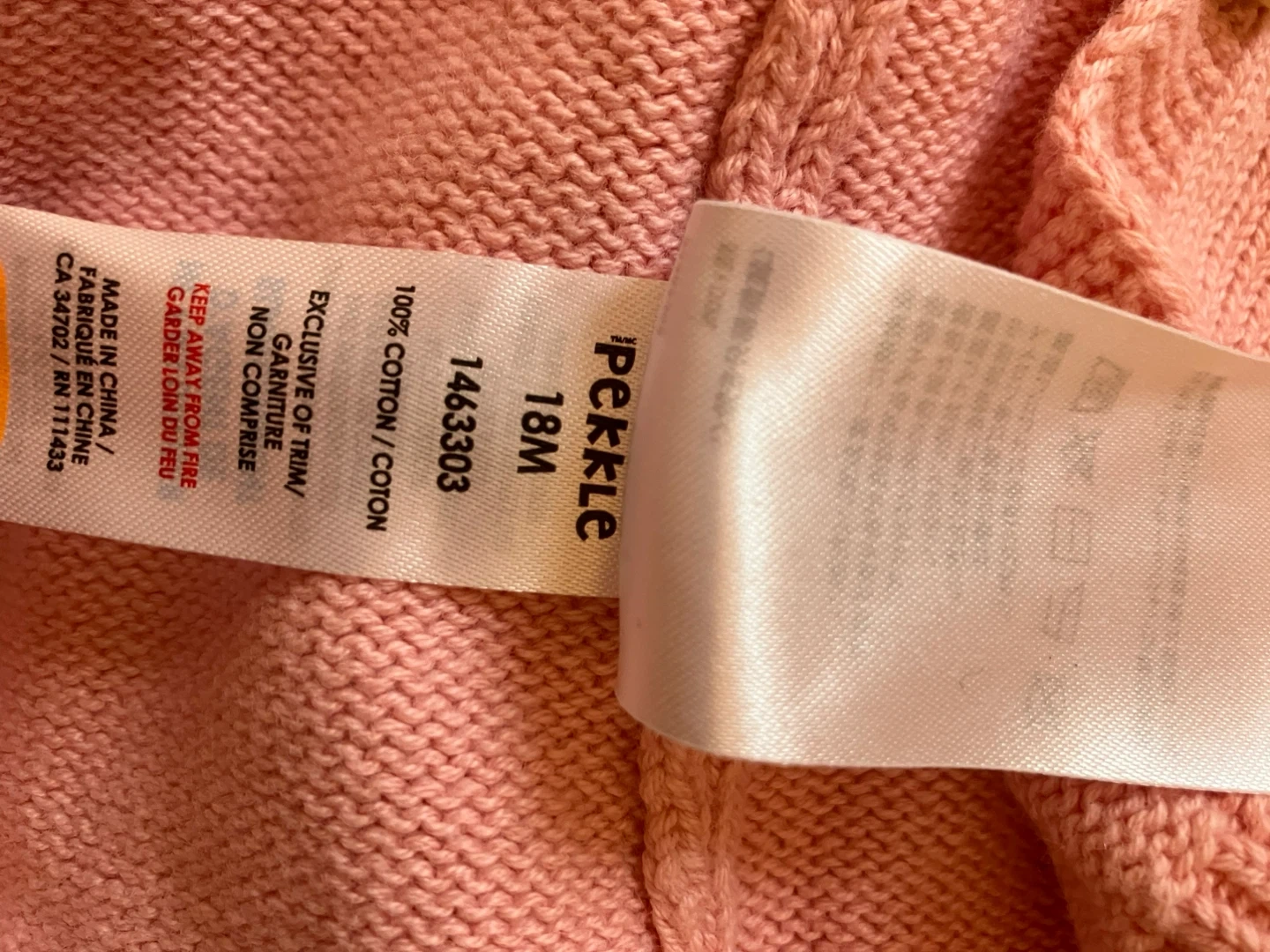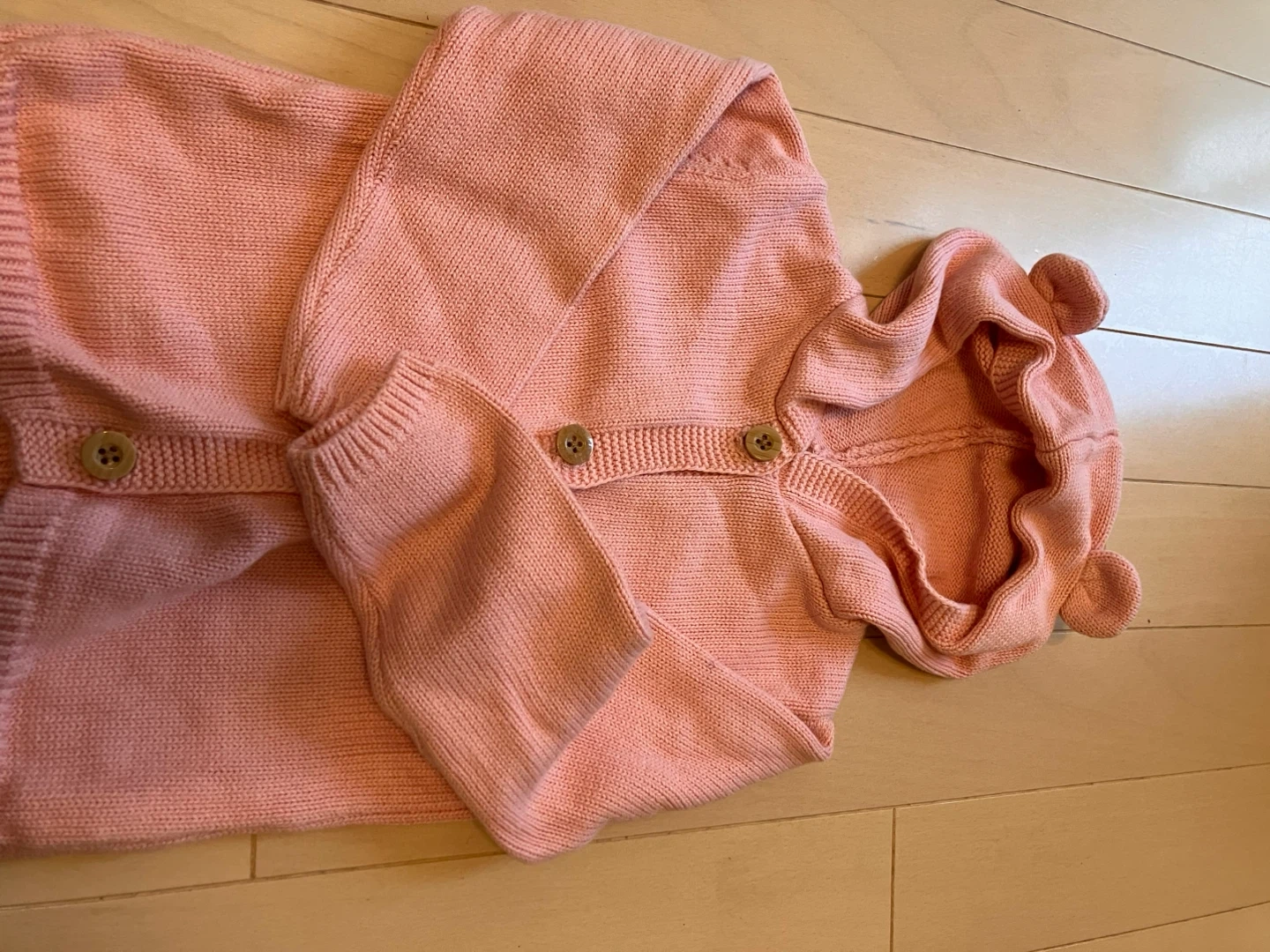 ペックルのカーディガンです ・ブランド:ペックル ・サイズ:18M ・素材:100% コットン ・カラー:ピンク ・フードにクマ耳付き ・状態:使用感少なめ 中古品であることご了承ください