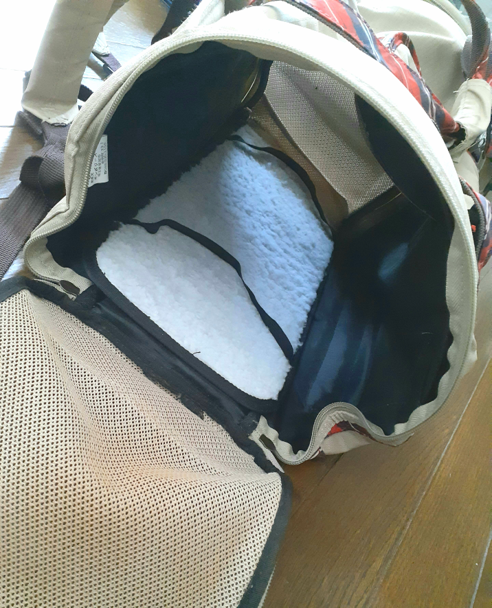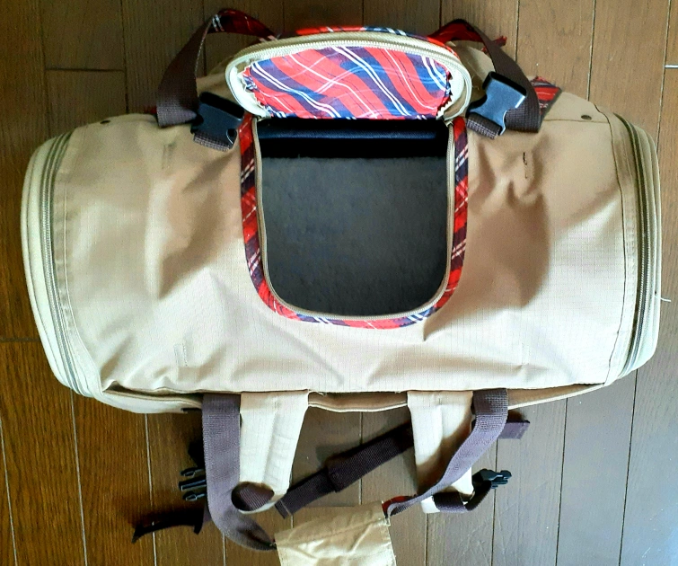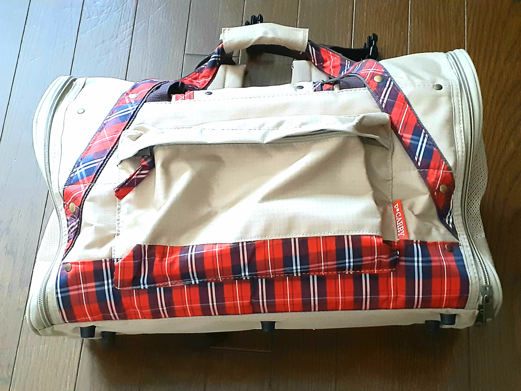 飼い猫のお出かけに数回使用した後、自宅にて5年程保管しておりました。 ポリエステル100%で洗濯可能なMサイズです。 リュック仕様にもなります。両側にポケット、左右どちらも開きます。上面に中を確認できるチャック式の小窓あり。 ほぼ未使用のきれいな状態です。 中のマット(取外し可)は洗濯済みです。 サイズ: 左右20cm、天地30cm 東急線新丸子駅前あたりでの受け渡し希望。取り引きのお時間は融通がききますので、ご相談ください。
