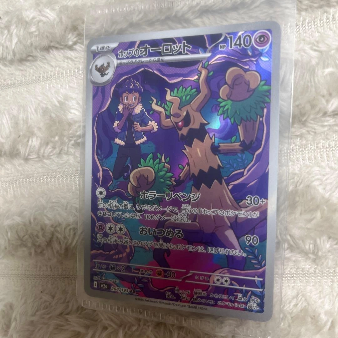 ホップのオーロット、HP140、SRレアリティのトレーディングカードです。 - ポケモン名: ホップのオーロット - HP: 140 - 技名: ホラーリペンシ - 技名: おいつめる - レアリティ: AR ご覧いただきありがとうございます。 開封後、すぐにフィルターに保管しました。 ⚠️ 注意事項(交換・返品なし) ・交換・返品は受け付けておりません。 ・商品の状態は写真のとおりです。 ・輸送中の微細なキズ等については責任を負いかねます。 ・購入前に写真をご確認ください。 ご希望の方はお気軽にご連絡ください。