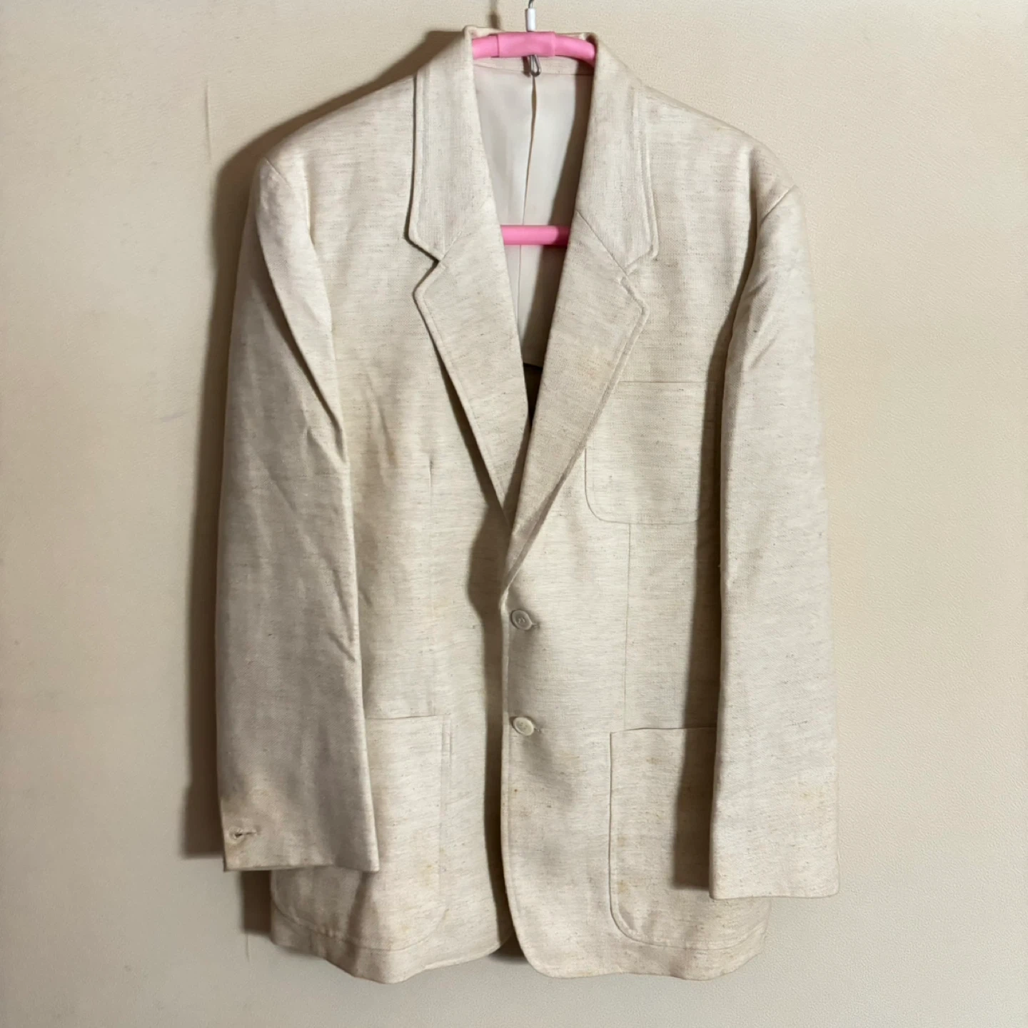 ホワイトクリーム色系のジャケットです かなり体重を絞ったためサイズ的に合わなくなってしまったのでお譲り致します 破れなどはありませんが個人着用ですので汚れなど(クリーニングなどで落ちるレベル)ご理解いただける方のみお問い合わせ下さい