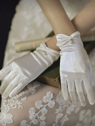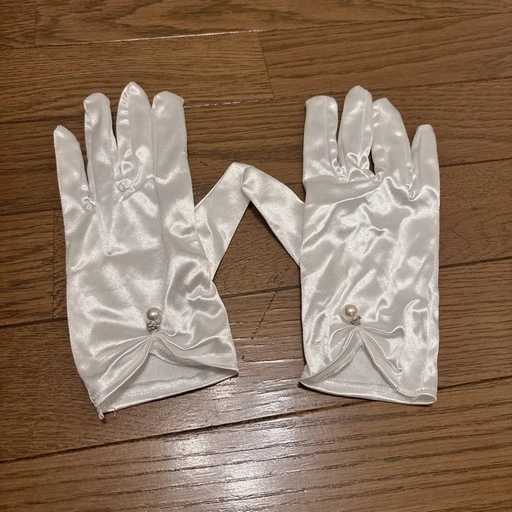 ホワイト サテン ウェディンググローブ パールリボン花嫁用