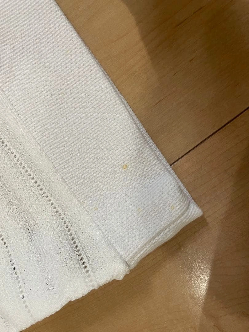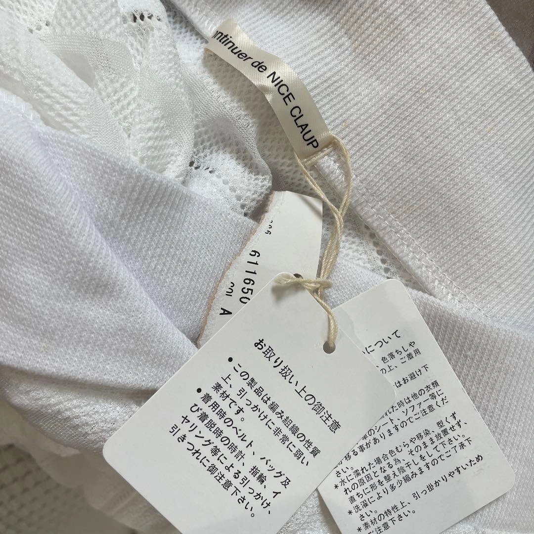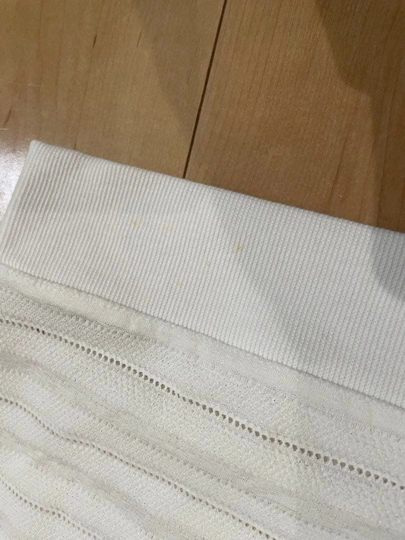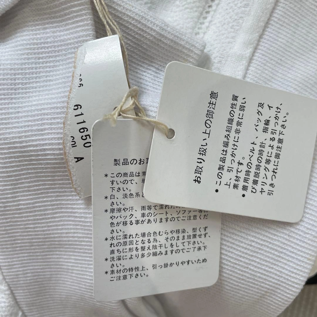ストライプデザインのホワイトニットです。アクリル・ナイロン素材。 - 色: ホワイト - 素材: アクリル、ナイロン - サイズ: フリーサイズ - 特徴: ストライプデザイン、半袖 ※こちらは新品タグ付きですが長期保管により裾と襟部分に薄い黄色いシミが付着しております。画像8枚目以降に載せてます。洗濯すれば落ちるかもしれませんが、わからないためお安く出品します。 ご希望の方はお気軽にご連絡ください。