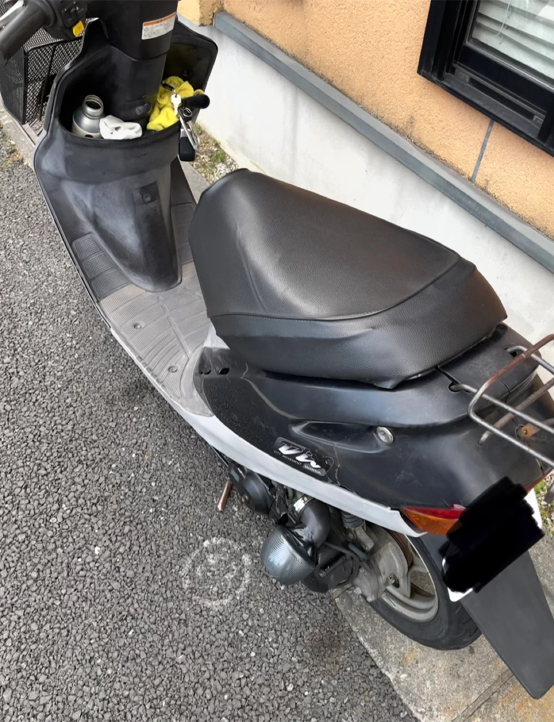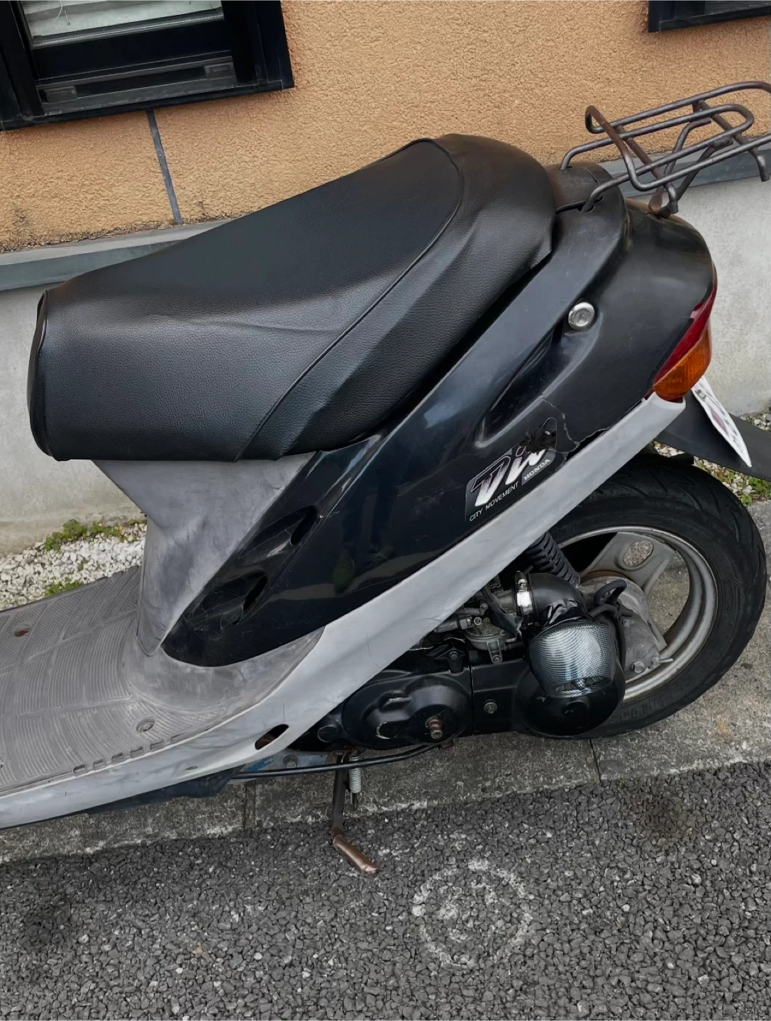ホンダの原付DIO af-27 ・車体色:ブラック、シルバー ・前カゴ付き ・ピニオンギア交換 ・シート破れ無し ・予備バッテリー付けます ・LEDヘッドライトに交換 ・外装割れあり ・ハザード可ウインカースイッチ ・ハイスピードプーリー ・純正エアクリではないため音大きいです。 ・大径キャブに変更の為、最初カブり気味です。 ・慌てて組み込んだ為オイル少し漏れあり。パッキン交換要 2st好きなかたどうでしょう? 12/26廃車手続き行きます。 譲渡証明出します。