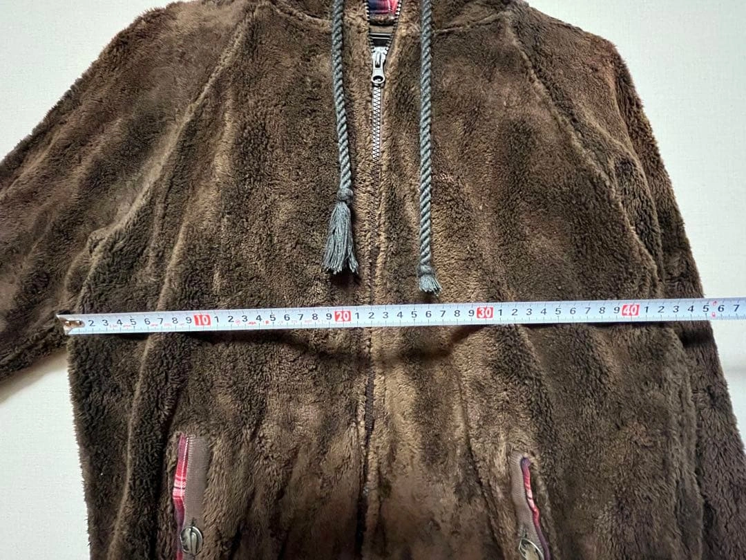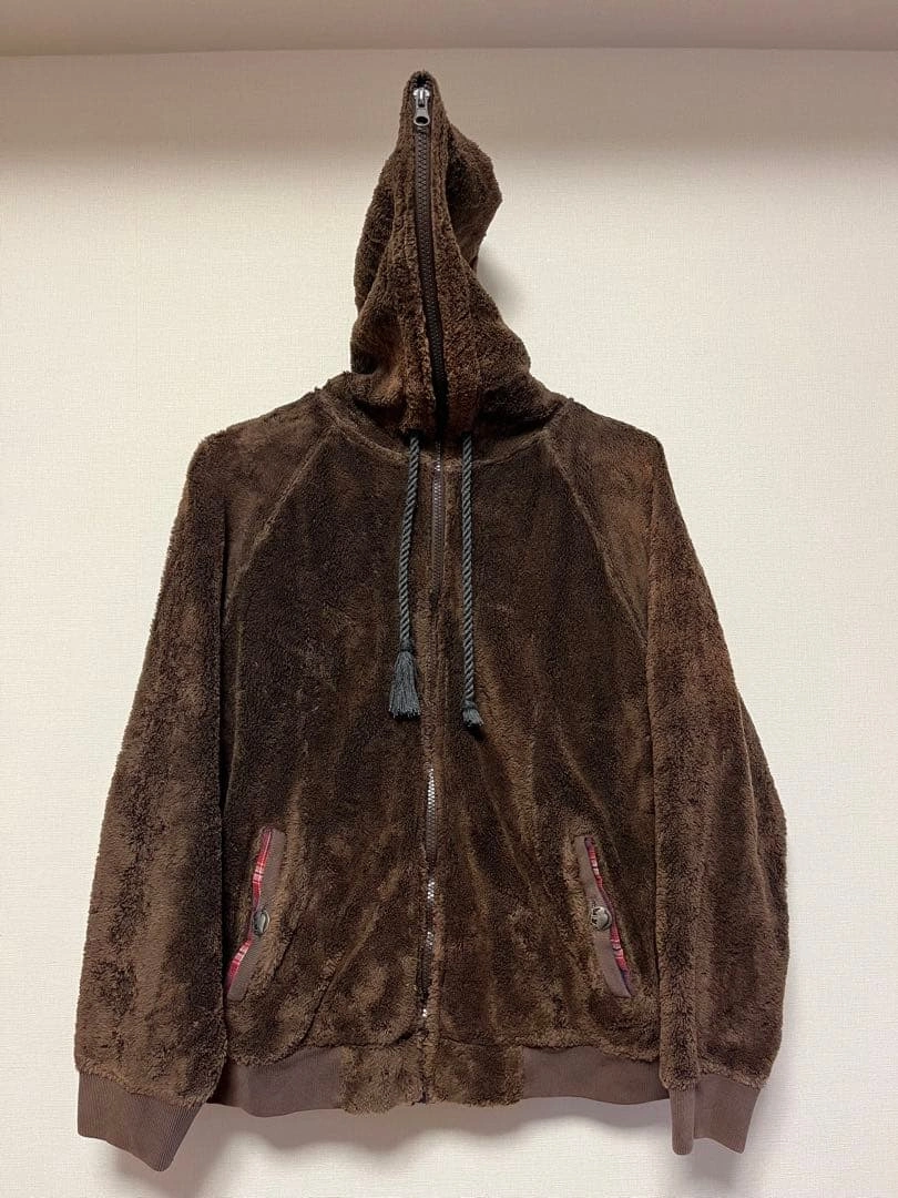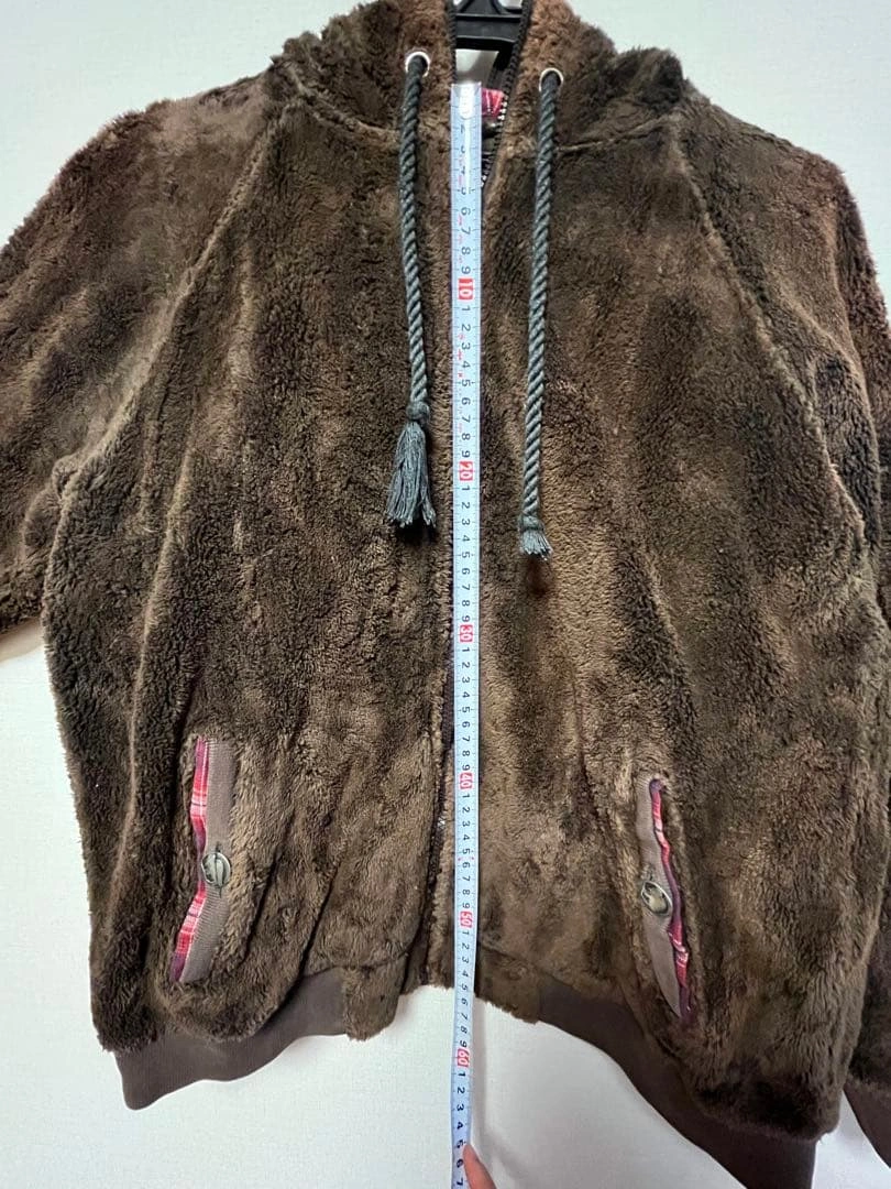 数年前使用していました。 毛玉や一部汚れがありますので、ご了承の上お取引をお願いいたします。 - カラー: 茶、ブラウン、赤青チェック - 素材:綿100% - 季節:秋、冬 - サイズ:着丈…約55cm、身幅…約42cm、袖丈…約58cm - 目安サイズ:身長160cm女性が着用していました - 特徴: フードまで閉まるチャック付き、ジップアップ、前面2つポケット付き(ボタン付き) #古着 ご希望の方はお気軽にご連絡ください。