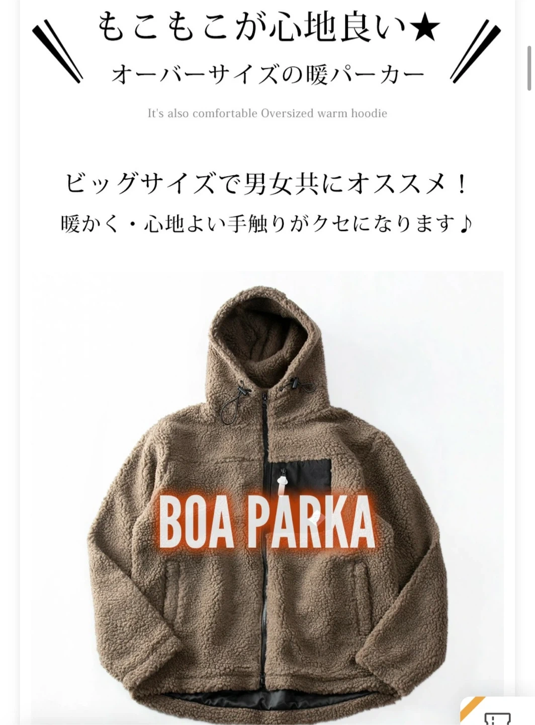 ボア パーカー メンズ 秋冬 アウター ジャケット ブルゾン ジップ フード 長袖 もこもこ ジップアップ 暖かい ゆったり おしゃれ 秋服 冬服 カジュアル 無地 シンプル M L LL XL 大きいサイズ 79803 ジェネレス サイズM モコモコとした手触りの暖かなボア素材で温もりを与えてくれるパーカー。 裏地も付いている為、温かく重ね着してもごわつきません。 軽い着心地なのでストレスフリーに着用して頂けます。 トレンドのビッグシルエットでゆったりとした着こなしを演出してくれます。 ふんわりと暖かな旬なアウターをこの機会に是非! 色は1枚目のブラウンです 状態綺麗です トラブル回避のため返品不可