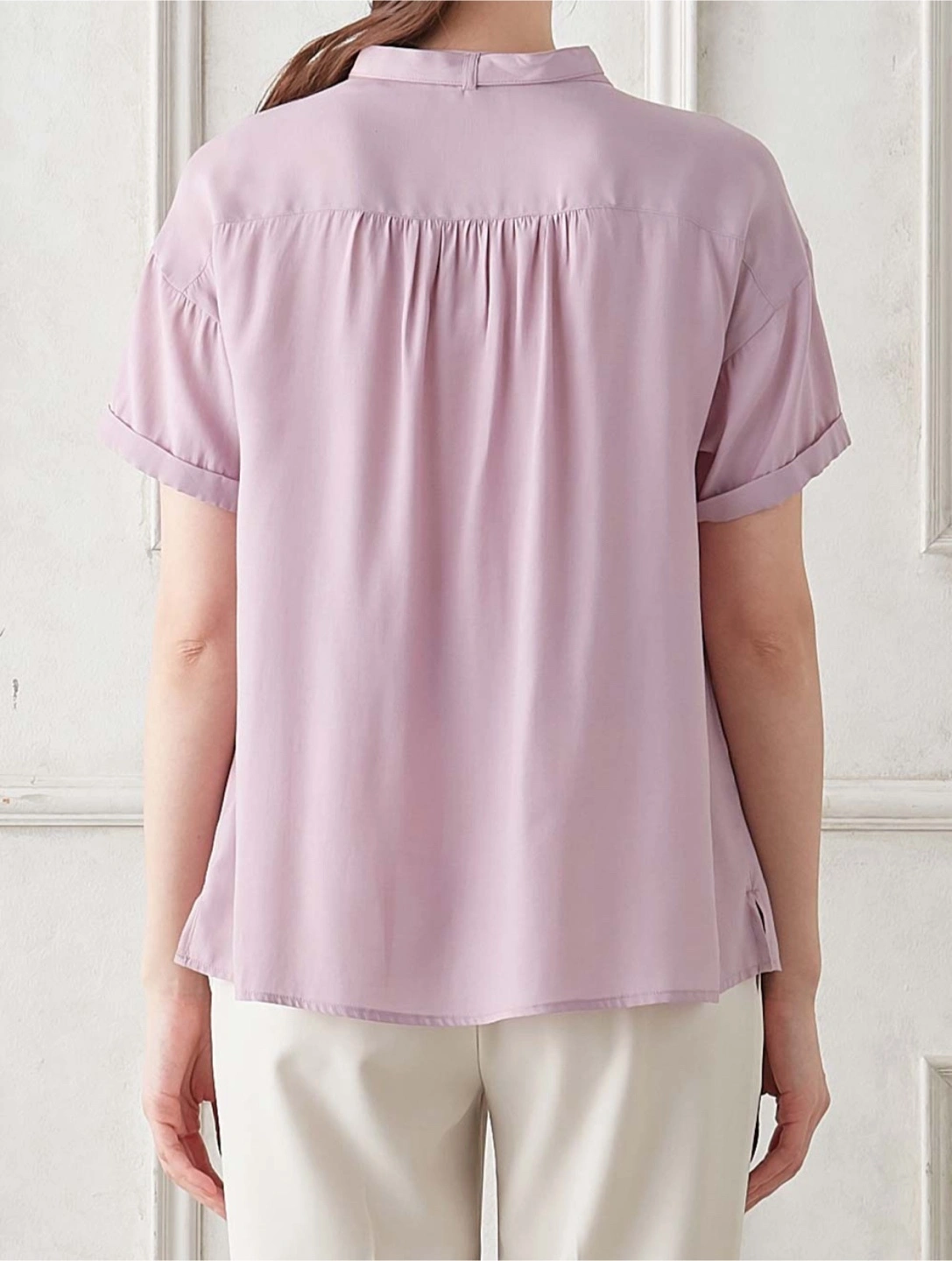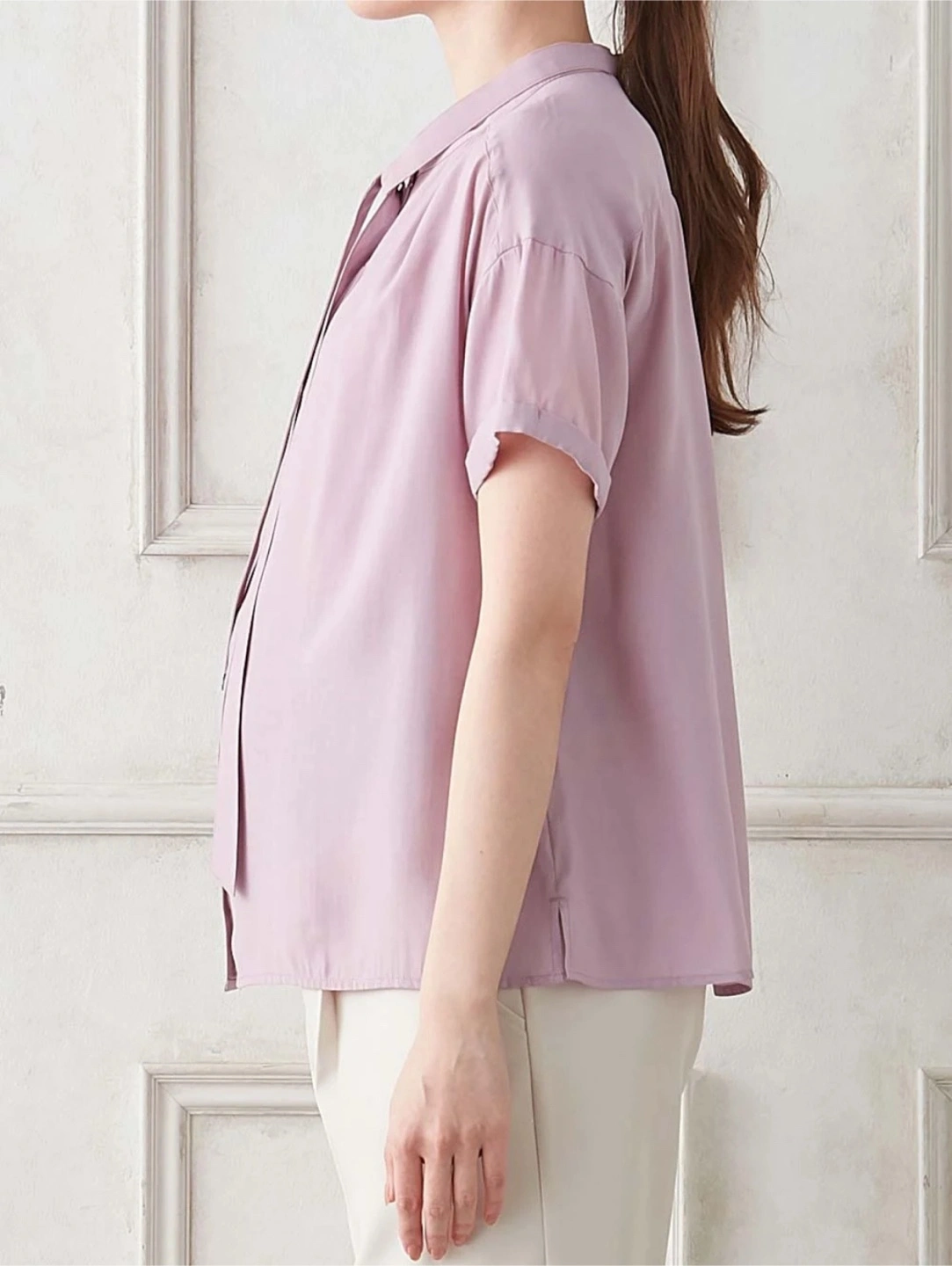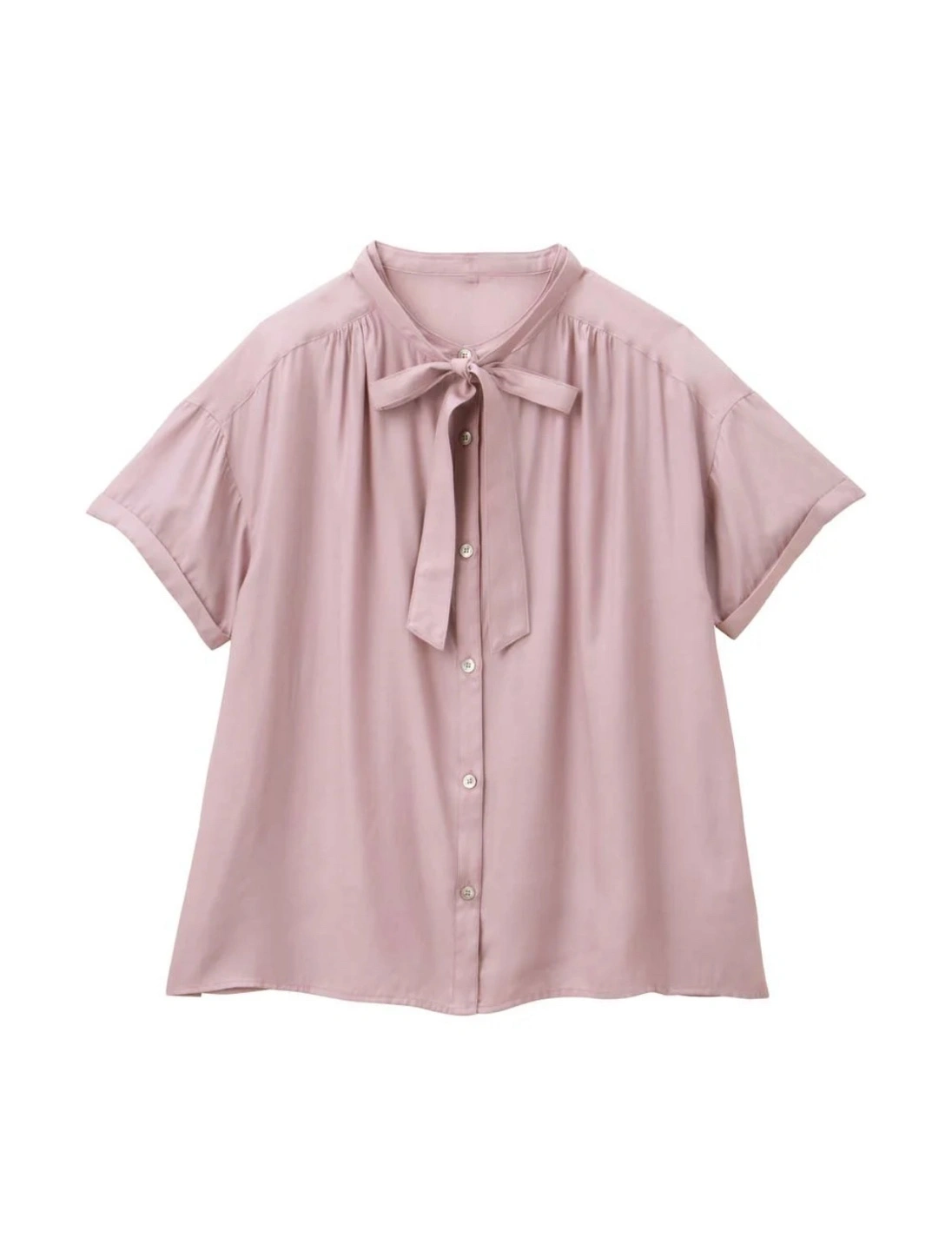 ⭐︎定価:5,990円⭐︎ カラー:グレイッシュピンク 試着と水通しのみです。 写真では実際の色味が出ないので商品画像の色味を参考にしてください。 程よい透け感がとても可愛いです。カジュアルにもオフィススタイルにも合うのでON/OFFで沢山着回しできます。 ---以下、商品説明--- ボウタイのつけ外しで幅広いアレンジが楽しめます 人気のバンドカラーシャツにボウタイをプラスして、より幅広いシーンで活躍する万能アイテムに。肩まわりにたっぷりほどこしたギャザーも華やかで、きちんと感がありながらも上品なスタイリングが楽しめるアイテムです。やわらかくてなめらかな肌触りとさらりとした涼感が魅力の綿混素材です。 ・すっきり見えるパターンを採用しながらも程よいゆとりがあるので、妊娠初期から産後まで長く使えます ・スカートにもパンツにも合わせやすい絶妙な丈に仕上げています ・クラス感のある貝ボタンを合わせました ******************* 透け感:あり 裏地:なし 伸縮性:なし 光沢感:微光沢 生地の厚さ:やや薄手 ******************* 袖丈···半袖 季節感···春,夏,秋 汚れ・破れ・臭いなど···なし カラー···ピンク系