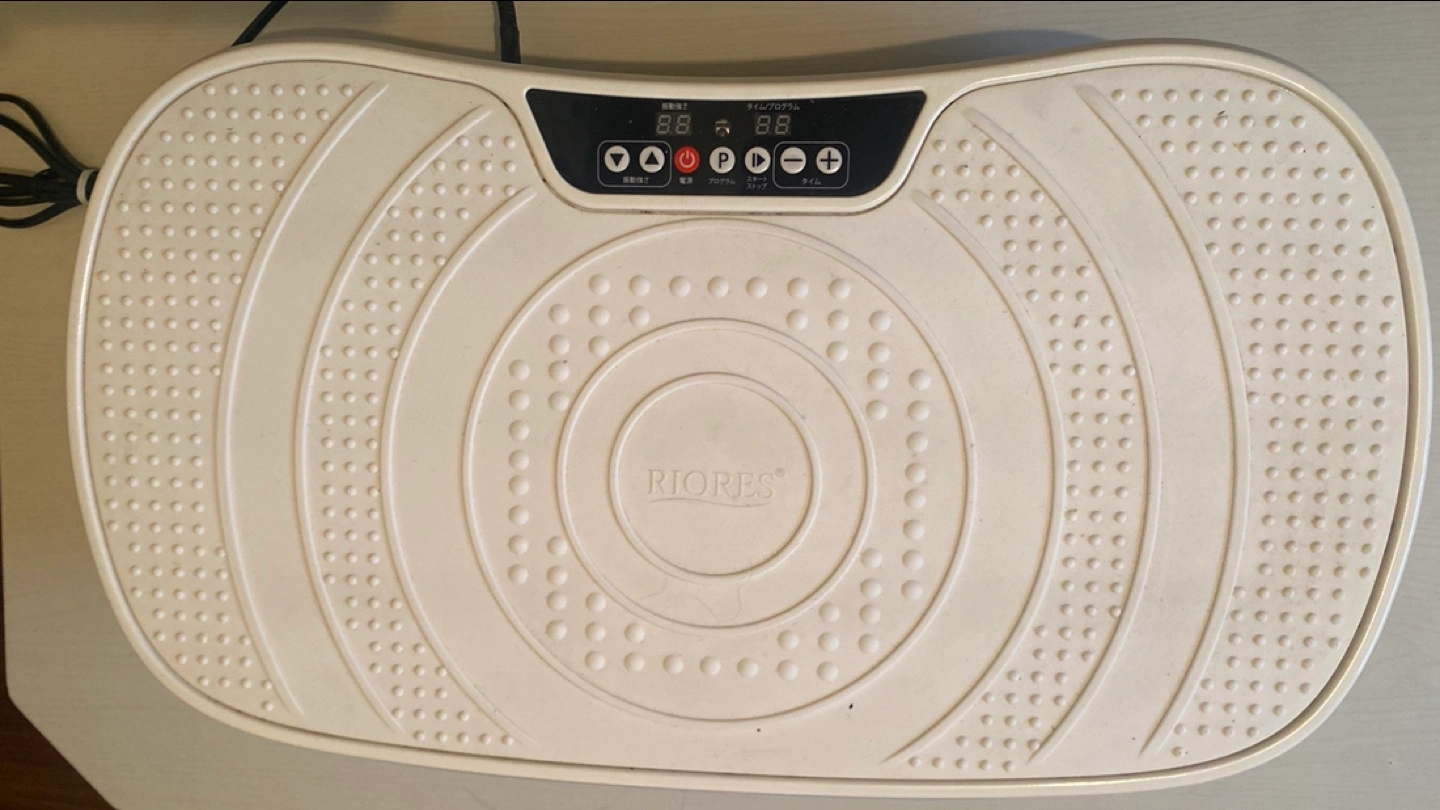 リモートワーク時に購入しました。 キレイだとは思いますが、マットは本体の足跡が付いてしまっています。リモコン付き、説明書付きです。 使用済みですが、お気になさらない方がいらっしゃったらご検討よろしくお願いします。 ブランド RIORES (リオレス) 商品の重量 8.24 キログラム 色 ホワイト 材質 プラスチック メーカー RIORES(リオレス) 振動回数880回 1日10分乗るだけ 簡単ダイエット 全身の脂肪・筋肉を揺らす!振動レベル99段階調整 PSE認証 本体:約561mm(幅) × 314mm(奥行き) × 145mm(高さ) 重量8.24kg 耐荷重 100kg 定格周波数:50/60Hz 定格消費電力:200W 定格電圧:AC100V 付属品:専用マット、リモートコントローラー(コイン型リチウム電池 CR2025)、電源コード、取扱説明書 ボディーシェイカーフィットは、振動による反射運動を利用し、ただ乗るだけで簡単に、本格的なトレーニングを可能とする、全く新しい トレーニングマシンです。 大きく見やすい本体操作パネル 操作パネルは、大きく見やすいようにシンプルに設計しました。 赤外線リモートコントローラーもついているので、立ったままの操 作が可能です。