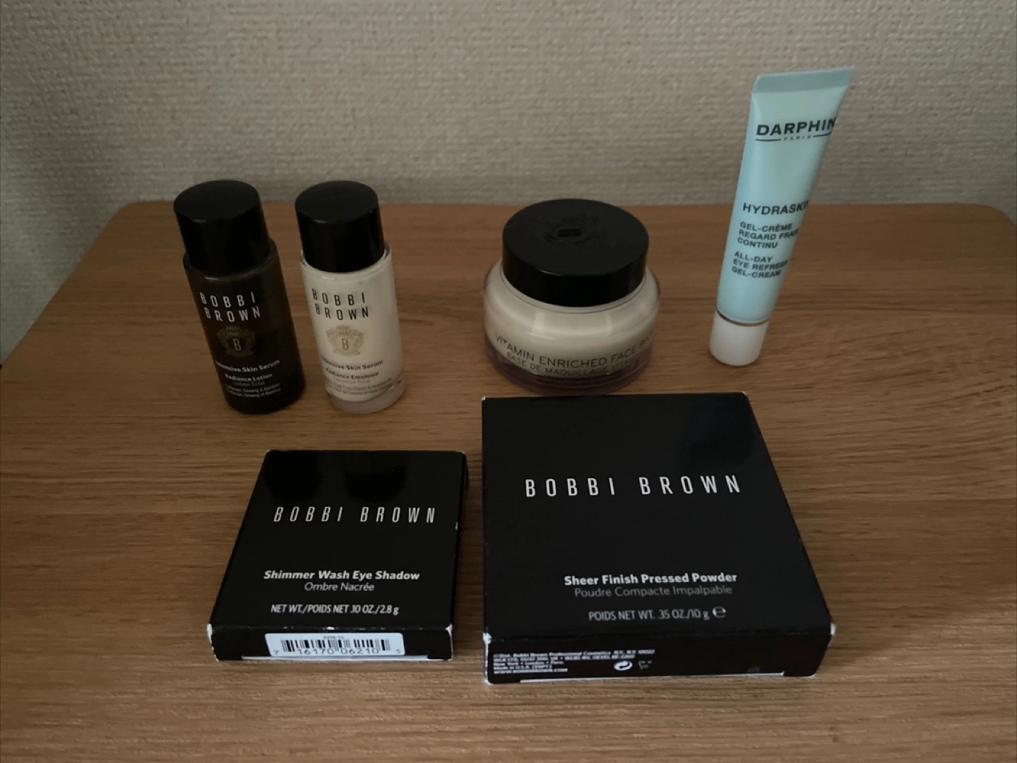 ・ボビイブラウン Intensive Skin Serum Radiance Emulsion ・ボビイブラウン Vitamin Enriched Face Base ・ボビイブラウン Shimmer Wash Eye Shadow ・ボビイブラウン Sheer Finish Pressed Powder ・DARPHIN HYDRASKIN ALL-DAY EYE REFRESH GEL-CREAM プレゼントでいただいた商品です。 自宅保管していました。 どなたか使っていただける方にお譲りします。 NC/NRでお願い致します。