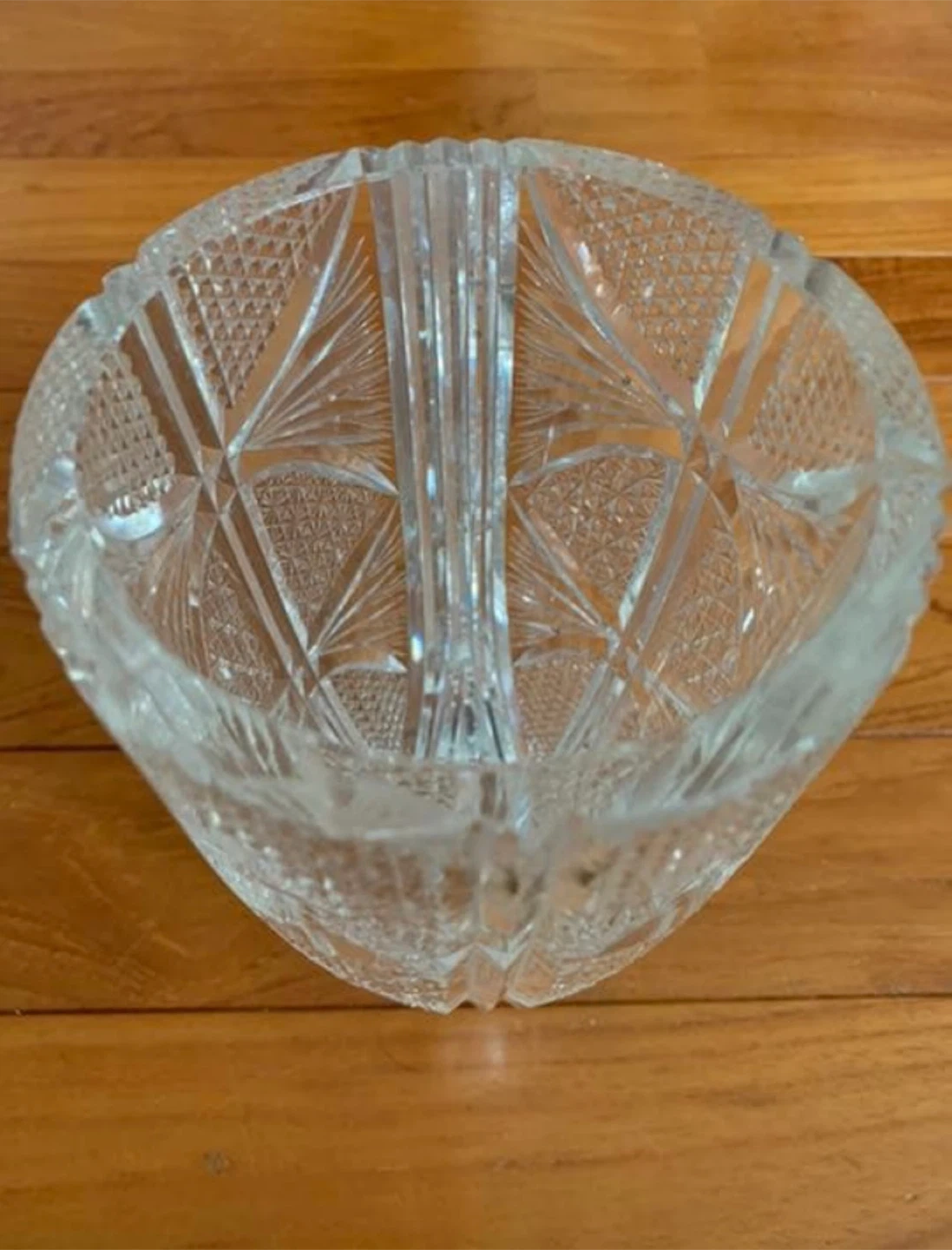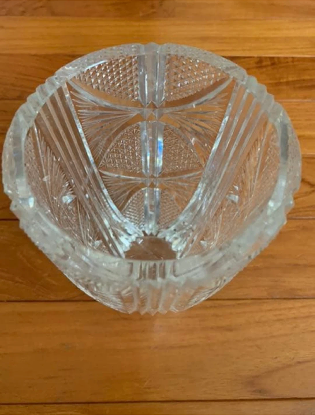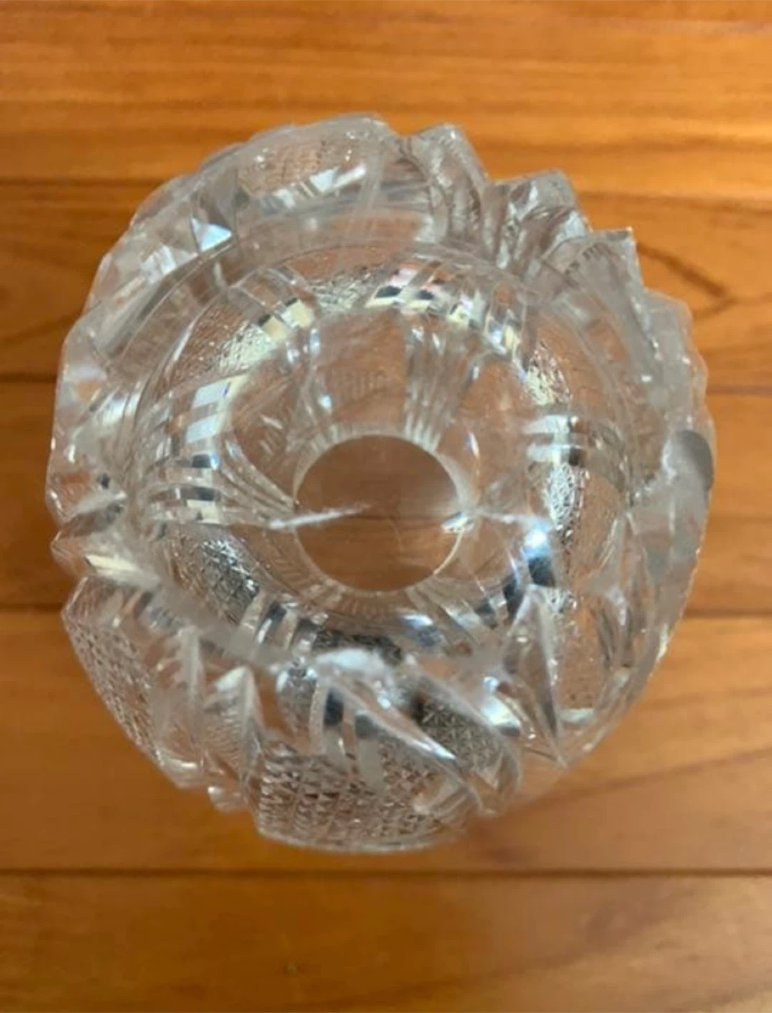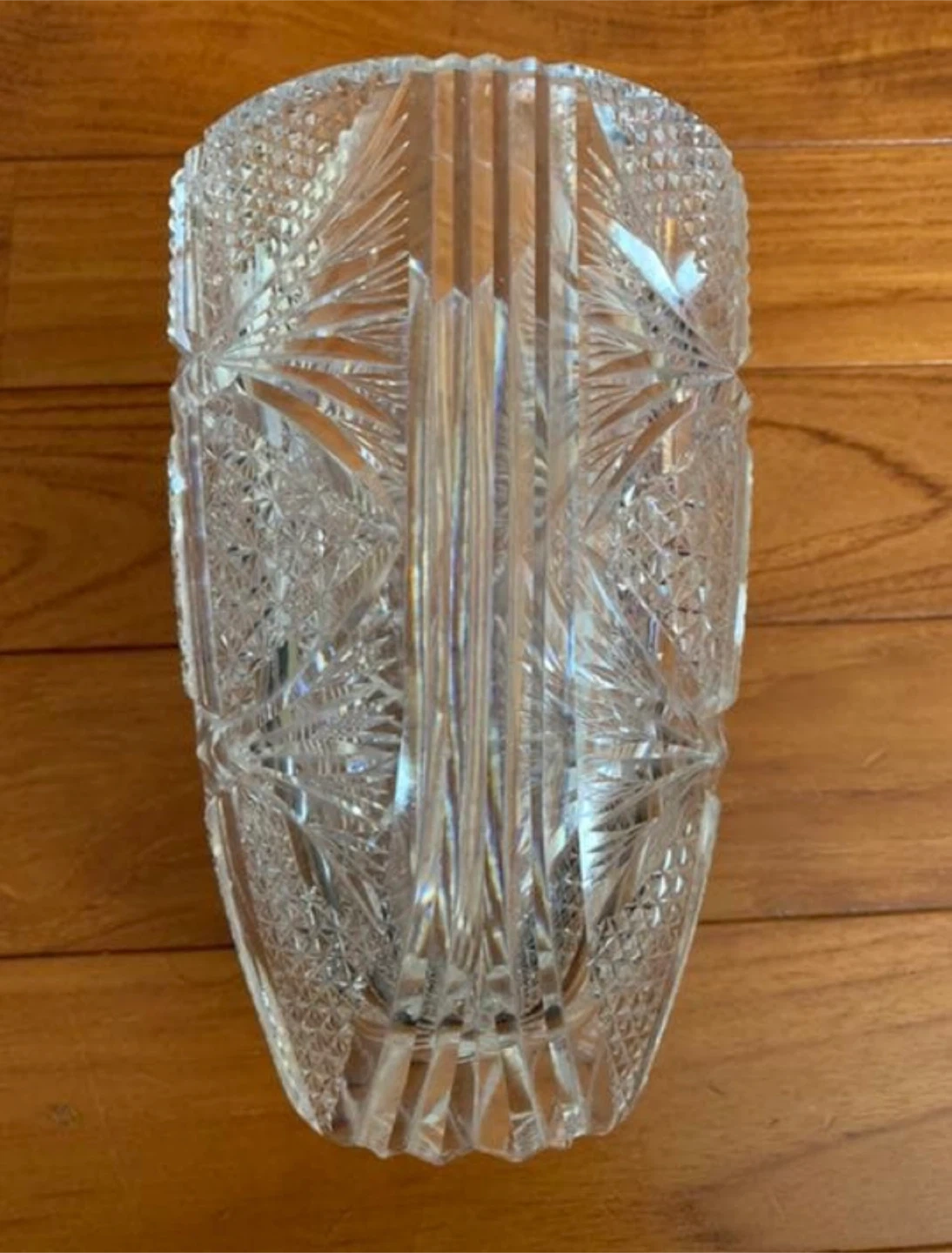 ボヘミアグラス 直径約11×高さ約17(cm) ※本体にはボヘミアグラス等の刻印はありません。 かなり細かく繊細にカットされた模様です。見た目では分かりませんが縦にカットされた筋の角が、爪を当てて滑らせると、ところどころ引っかかりますから細かな傷などはあります。 また底部には少し深い擦り傷があります。 大きな割れや欠けはありませんが年代物なので経年変化や経年劣化、擦り傷がありますので、画像を良くご覧頂き、ご理解ご納得の上、お買い求めください。 なお確認されたい箇所があれば画像追加致しますので、お伝えください。 お客様都合による返品はご遠慮下さい。