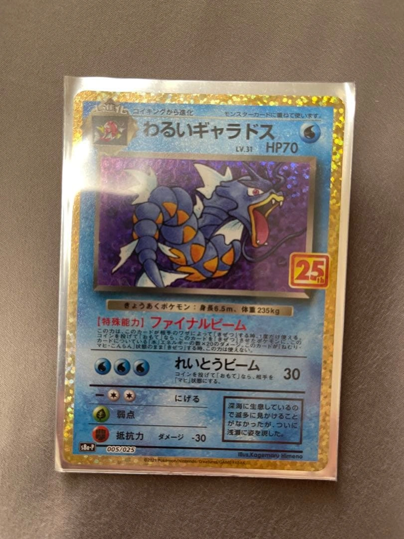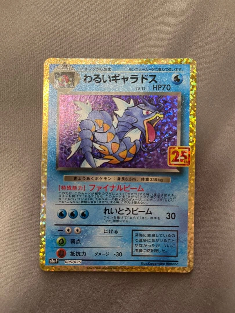 わるいギャラドス プロモカードパック 25th ANNIVERSARY edition S8a-P 005/025 シリーズ: ソード&シールド セット: Sシリーズプロモカード セット詳細: プロモカードパック 25th ANNIVERSARY edition カード名: わるいギャラドス 型番: S8a-P 小さな傷があります。写真をよくご確認ください。よろしくお願いします。