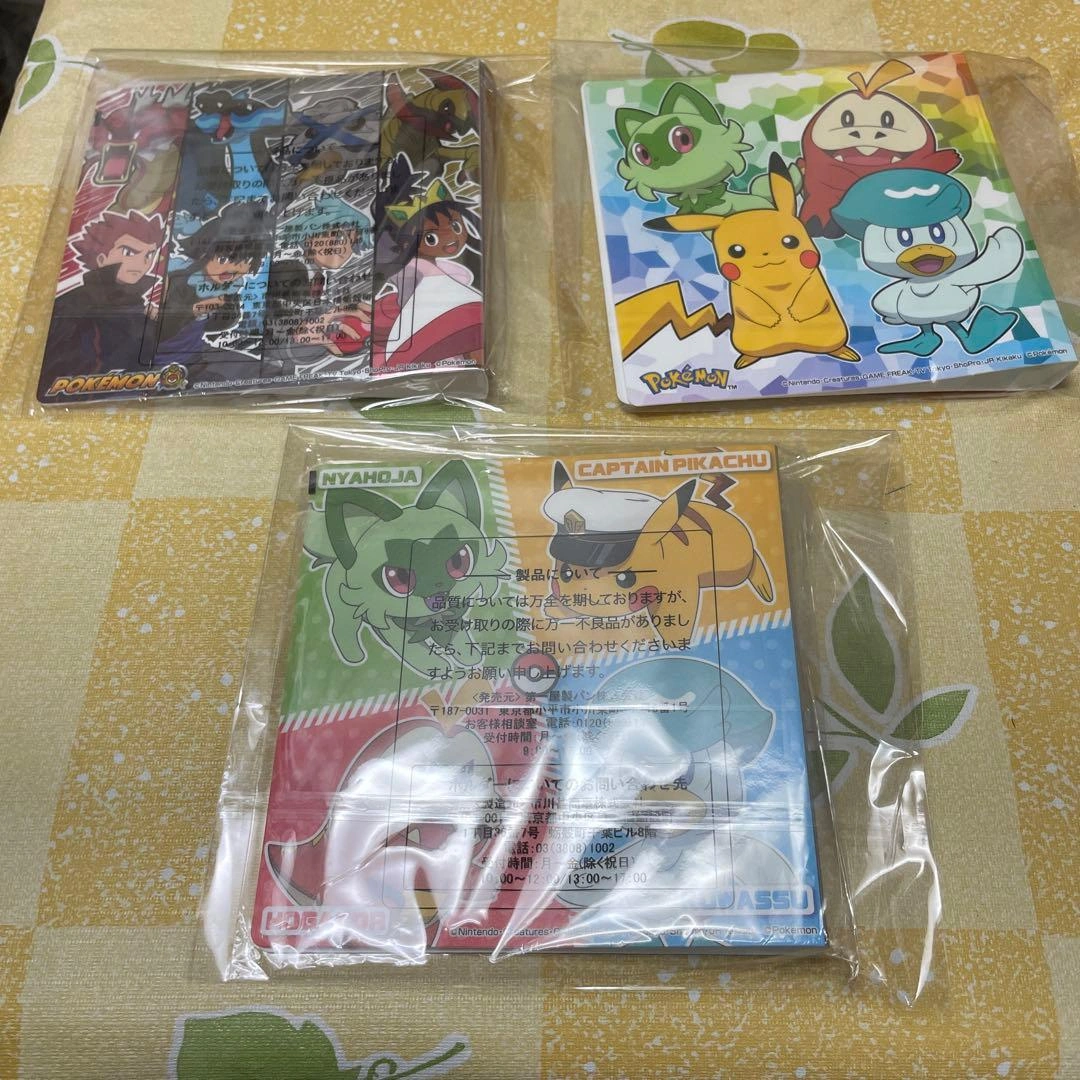 未使用です。 *未開封シールはついていません* 2022年から2025年までにでたポケモンパンシールホルダーです。全部で8個です。 使用はしていませんがシールを取る時にビニールが破れてしまったものもありこちらで用意したビニールに入れてあります。 おまけ でシールお付けします。シールは年代が古いものもあります。 全てセットでお願いします。 自宅保管ですので御理解頂ける方のみご購入お願いします。 ご希望の方はお気軽にご連絡ください。