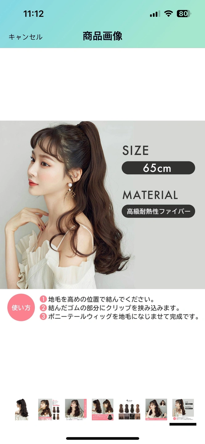 【ふわふわ巻き髪ポニーテール】ボリューム感たっぷりの巻き髪ポニーテールのウィッグ。ふんわり巻き髪で大人かわいいを演出できます。簡単イメチェンで、いつもと違う自分をお楽しみください。 【しっかり留まるクリップ式】地毛にはさむだけで簡単に着用できます。約10cmの丈夫なクリップで、外に響きにくく使いやすいタイプ。 【使い方】地毛を高めの位置で結んでください。結んだゴムの部分にクリップを挟み込みます。ポニーテールウィッグを地毛になじませて完成です。 【商品仕様】○長さ:65cm ○カラー:ショコラブラウン、ダークブラウン、ブラック、ライトブラウン ○仕様:高級耐熱性ファイバー、クリップ式
