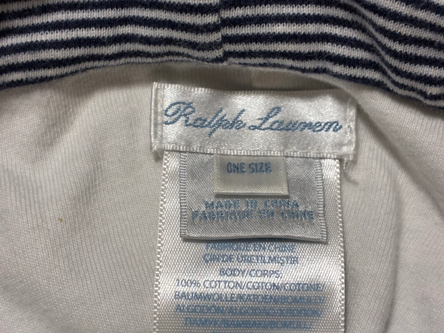 Ralph Lauren ベビー帽子 ビーニー ・ブランド:ラルフローレン ・色:ネイビー×ホワイトのストライプ ・サイズ:ONE SIZE 43センチ ・素材:100% コットン ・状態:使用感は少なめです