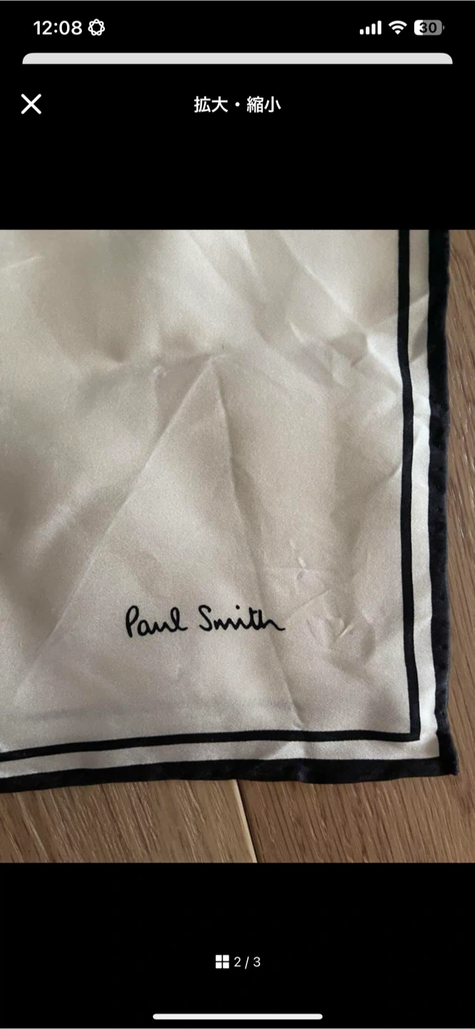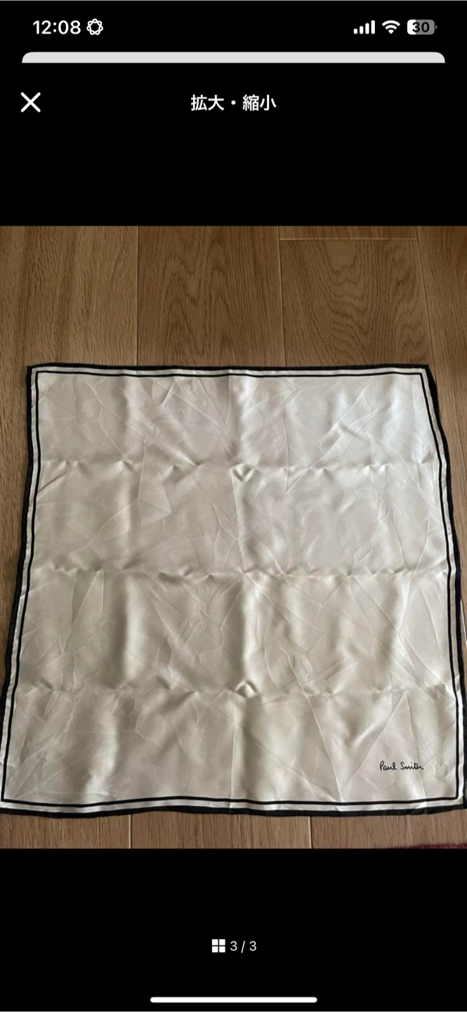 メーカー: Paul Smith サイズ:40cm×40cm 素材:シルク100% カラー:パールホワイト(真珠色)×ブラック(縁取り) このハンカチには破れや裂け目はありません。一度使用した後、ドライクリーニングとアイロンをかけましたが、非常に柔らかいため、シワが目立っています 梱包の関係で多少シワが入る場合がございますので予めご了承ください 中古品の購入に敏感な方はご遠慮ください。喫煙者ではなく、ペットも飼っていません 即購入でも問題ございません。ご覧いただきありがとうございます 汚れ・破れ・臭いなど···なし
