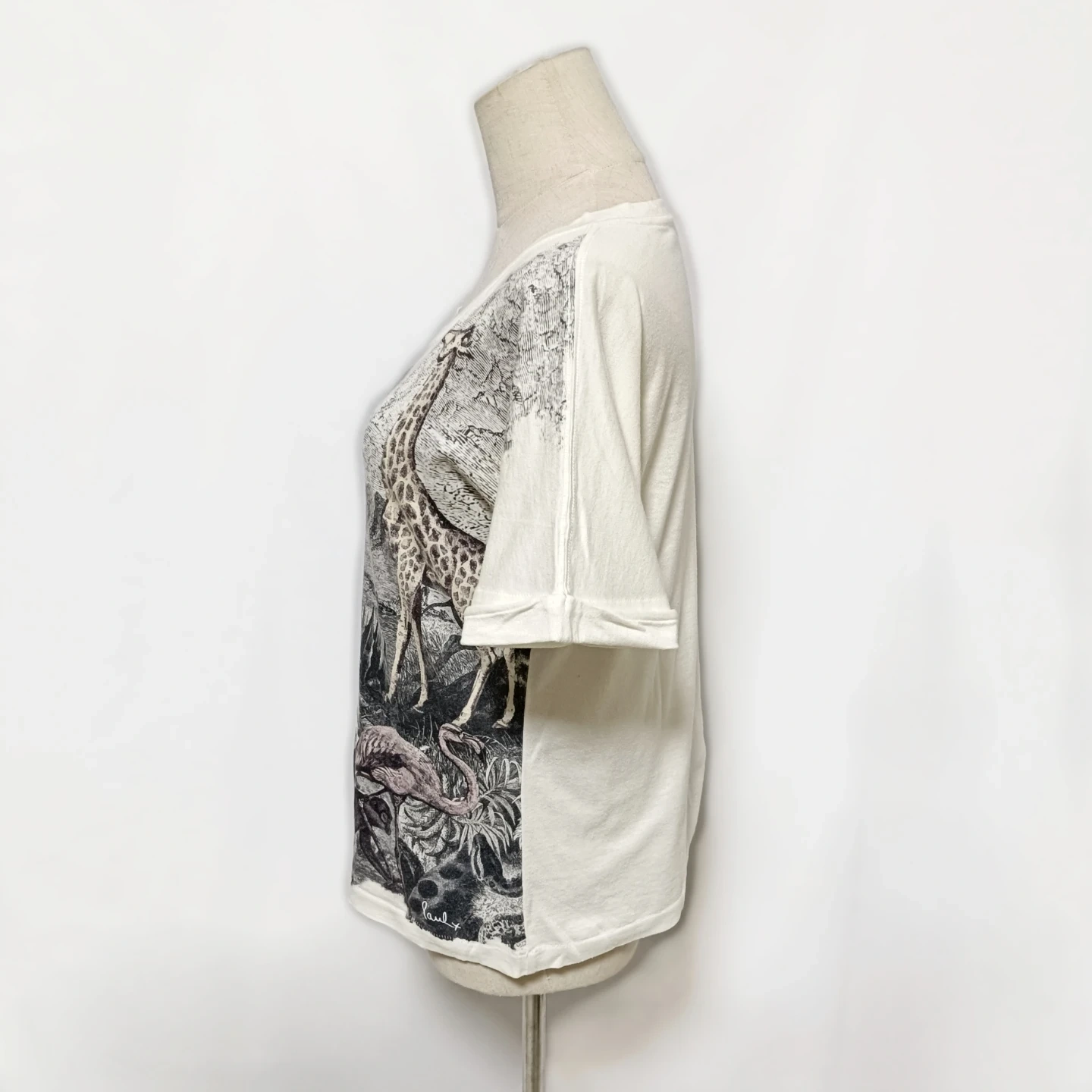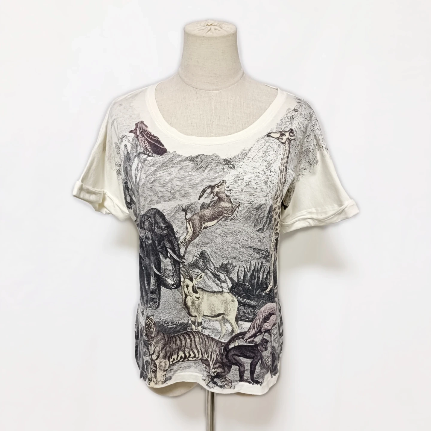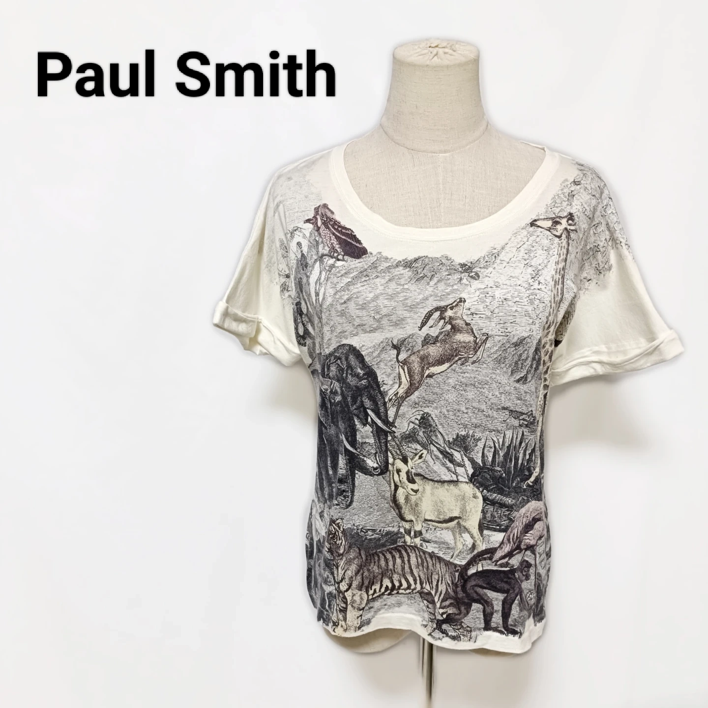 ご覧いただきありがとうございます! Paul Smith(ポールスミス)のアニマル総柄カットソーです。 象、虎、キリン、猿など、サファリの動物たちが繊細なタッチで描かれた、ポールスミスらしい遊び心と芸術性の高い一着です。 現在は入手困難な希少デザイン。 安心の日本製(オンワード樫山)で 、綿100%の柔らかな肌触りが特徴です。 □商品名□ ポールスミス【美品/希少】Tシャツ アニマル 総柄 サファリ 象 虎 M 日本製 □ブランド□ Paul Smith ポールスミス □表記サイズ□ M バスト 79〜87、身長 158〜164 □実寸サイズ(cm) □ 着丈:50 身幅:50 袖丈:27 ※実寸につきまして多少の誤差はご了承ください。 ※表記サイズだけではなく実寸のサイズをご確認ください。 □カラー□ オフホワイト(生成り)系 □素材□ 綿 100%(コットン) □コンディション□ 目立った汚れやダメージなど特にございません。 ※汚れはできる限り写真にて掲載しております。まずは画像をご確認ください。 どうぞよろしくお願い致します。 □商品管理番号□ HH3-R-5644