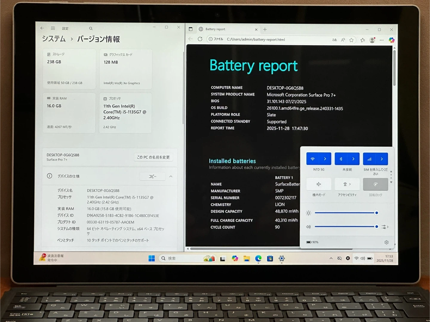 マイクロソフト Surface Pro 7+ Core i5 1135G7 8GB 256GB