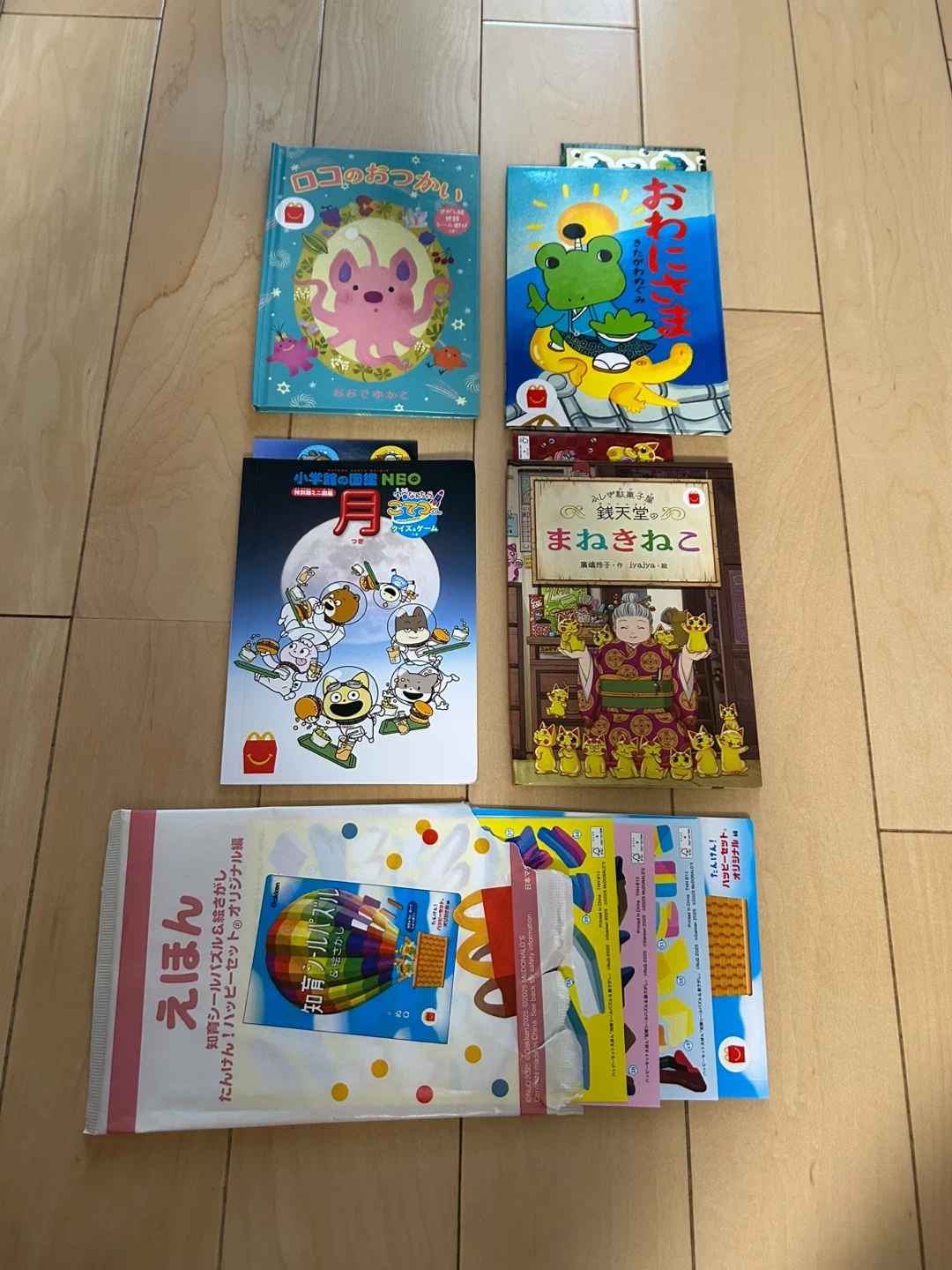 閲覧ありがとうございます。 ・「ロコのおつかい」   (シール貼ってしまいました) ・「おわにさま」きたがわめぐみ ・「小学館の図鑑NEO 月」 ・「まねきねこ」廣嶋玲子,作 jyajya,絵 ・知育シールパズル&絵さがし たんけん!   (封は開けてしまいましたが未使用です) 神経質な方はご遠慮下さいませ。