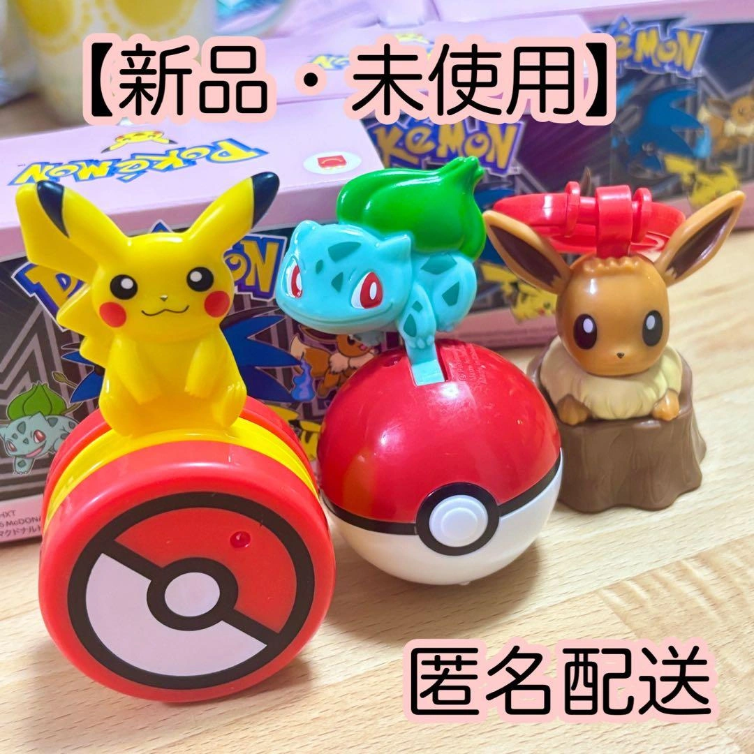 【新品・未使用】 *受け渡しは、「柿の木公園」に設定しておりますが、横浜市都筑区内でしたら変更可能です! マクドナルド ハッピーセット ポケットモンスター 2025 第二弾 3点セット ・ピカチュウのモンスターボールゆらゆらローラー ・フシギダネのモンスターボールローラー ・イーブイのシャカシャカキーホルダー 画像1枚目は、息子の物になります。本品は画像2枚目以降になります。 1度開封して中身の確認をしておりますが、未使用でございます(*^^*) 識別番号: 4567・6789・7890 ※初期不良がございましたら、お近くのマクドナルドにお問い合わせください。