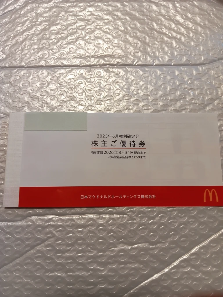 くマクドナルドの株主ご優待券です> バーガー、サイドメニュー、ドリンクどの種類、サイズでも注文できる券が6枚つづりで1冊。券1枚あたり750円。5冊までオーダー可。高めの商品を店頭で注文すれば、その分お得です、という冊子です。 何冊欲しいか教えて下さい。1冊あたり4500円です。なるべく東急多摩川線沼部駅まで来て下さる方。武蔵小杉等でしたら、ベットボトル2本くらい、ご用意下されば。 ☆ヤフーオークションで、今皆さんが競っている商品です。私は利益を一切乗せていない金額ですので、実質的に譲渡役です。必要な方、お子さんがいらっしゃる方などに、お渡しできればと存じます。 ・有効期限:2026年3月31日 (中古品であることご了承ください)