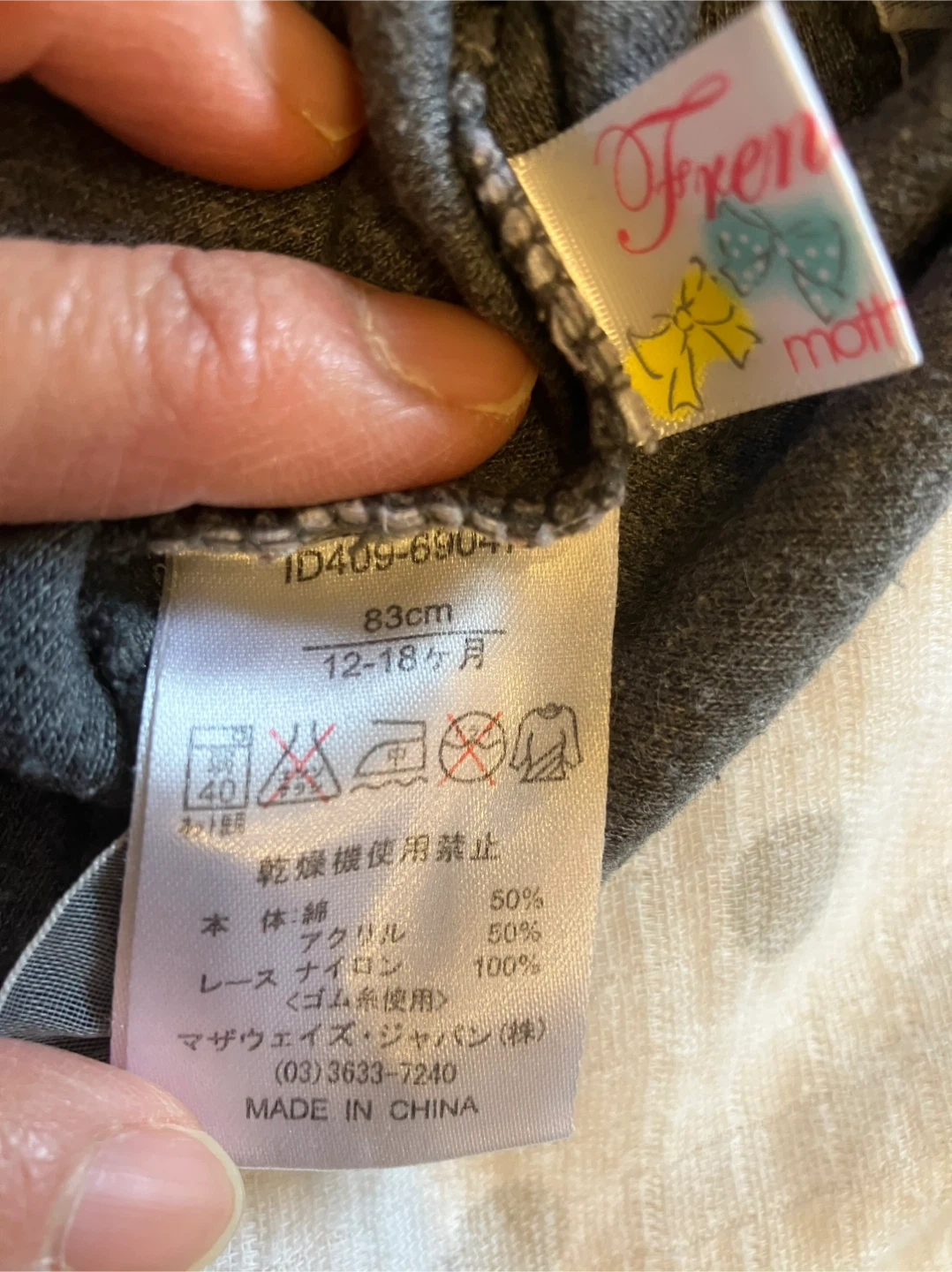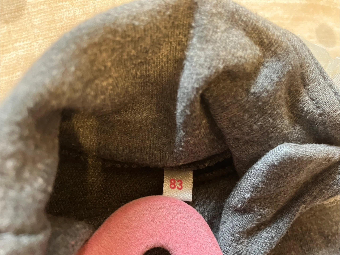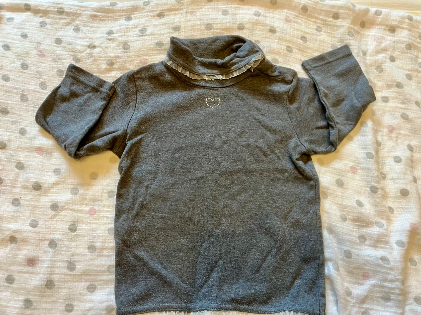 マザーウェイズ フリル付きタートルネック長袖 83センチ グレーのお色で、どんなお洋服の中に着せてもグレードアップしてくれる、素敵なお洋服です^_^