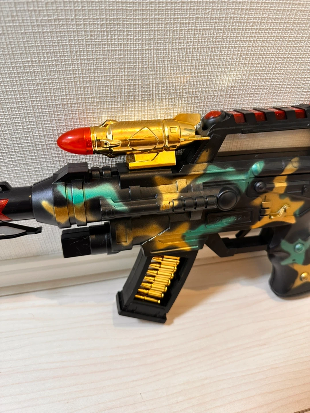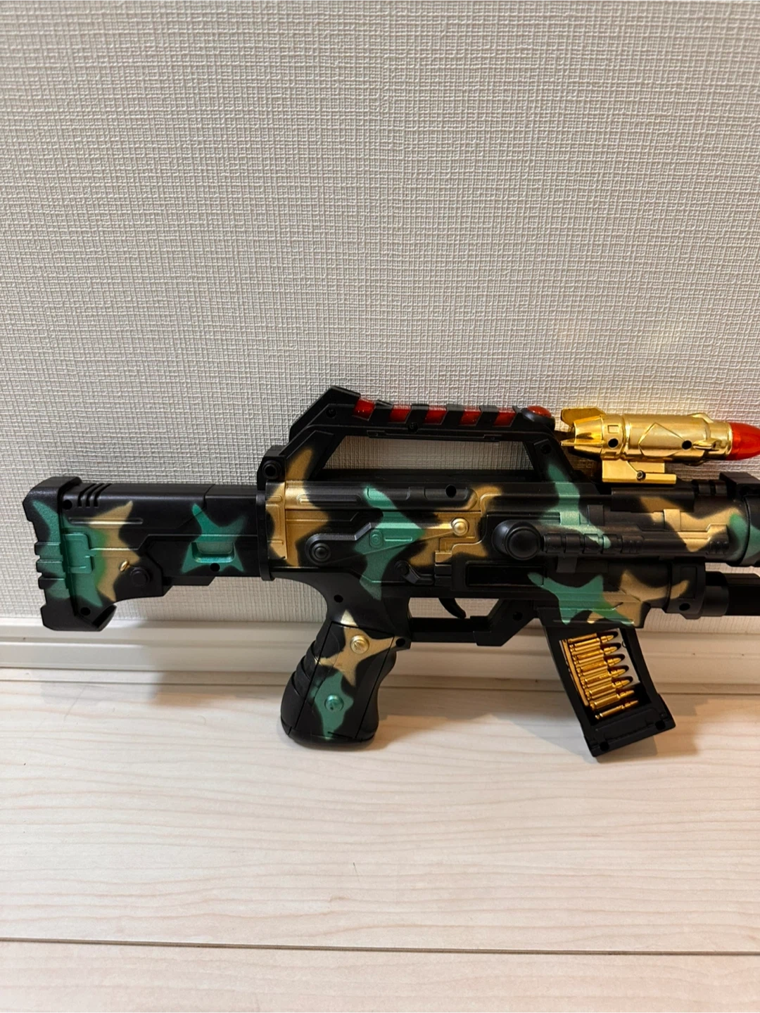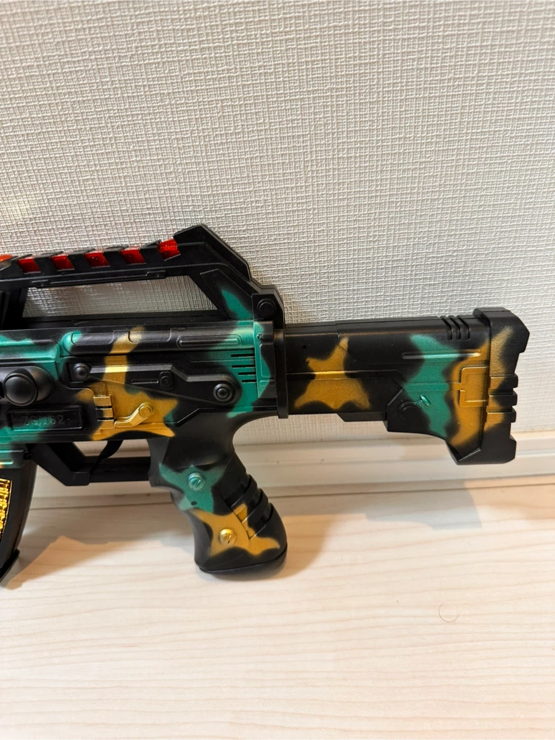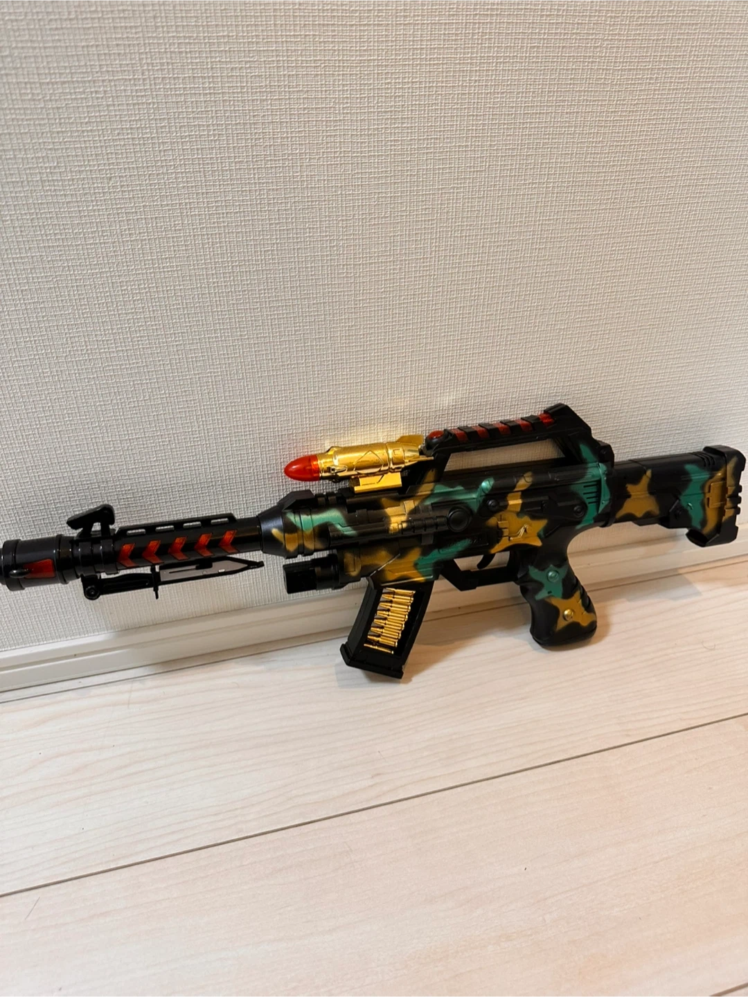 ご覧頂きありがとうございます♪ 電池を入れたら、ピカピカ光って銃の音がなります。 今年の夏に購入しました。 断捨離のため出品します。 他のサイトにも出品しておりますので早い者勝ちです!