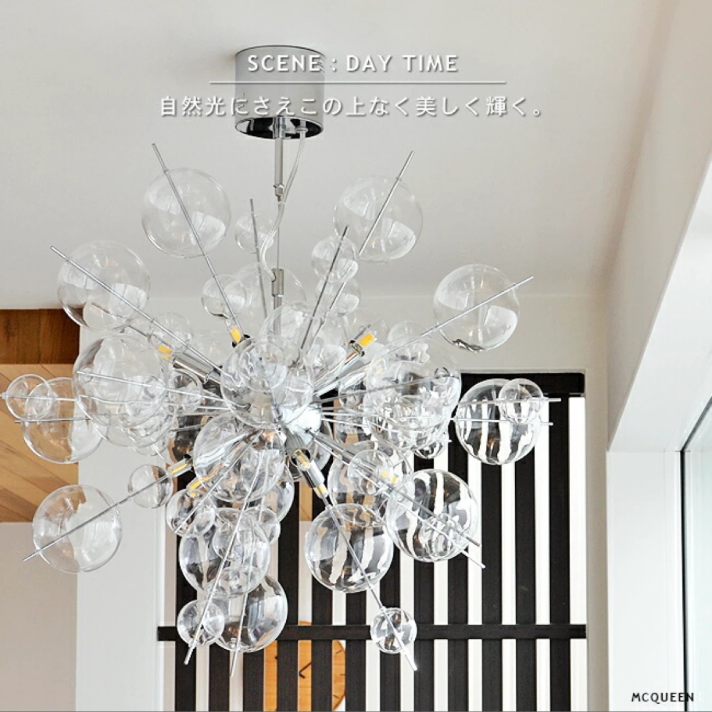 ペンダントライト MCQUEEN:マックイーン ライト 照明 おしゃれ ダイニング用 玄関 吹き抜け リビング 寝室 スタイリッシュ クローム ガラス シャボン玉 バブルシャンデリア 球体 寝室 エントランス 店舗装飾 内装 デザイナーズ ミニマル 簡単取付 6畳 8畳 モダン MDASH-001N