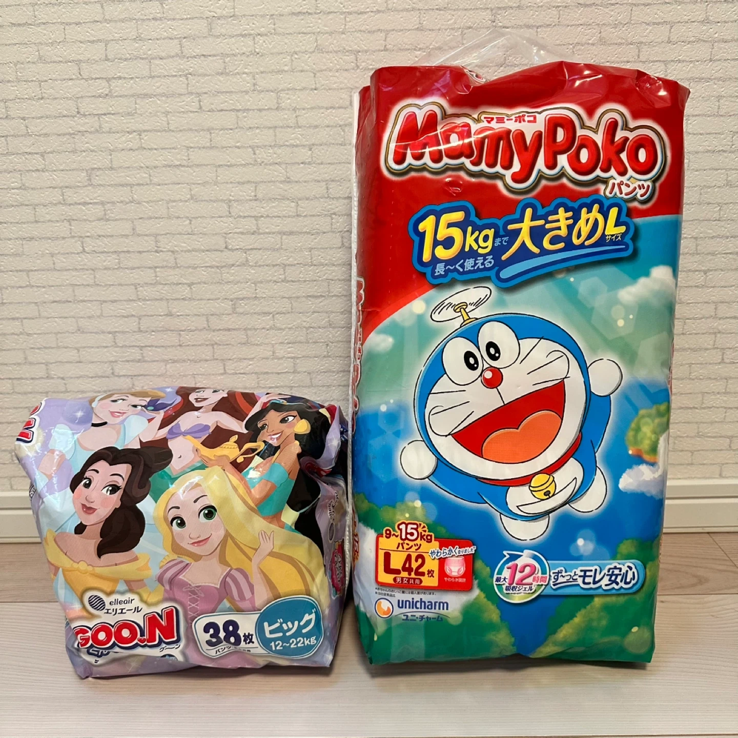 おむつパンツのセットです。 ・マミーポコ パンツ Lサイズ 42枚 未開封 ・グーン パンツ ビッグサイズ 12枚 ペットや喫煙者はおりませんが、グーンに関しては開封してありますことご理解くださいませ。