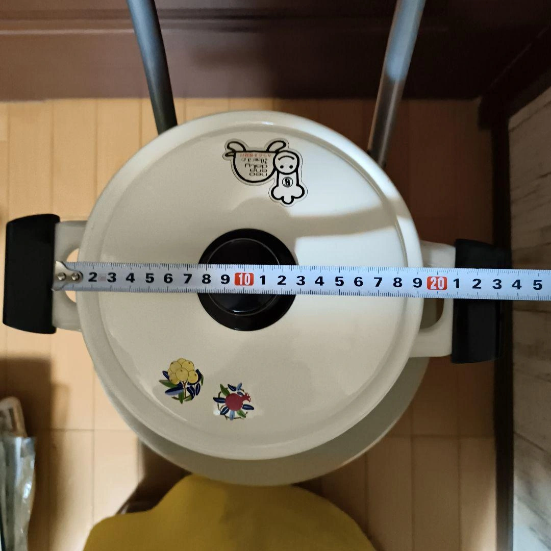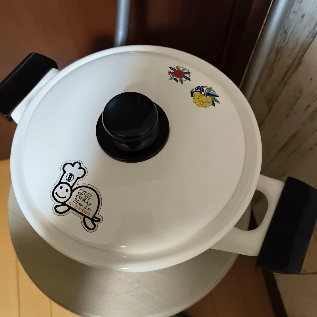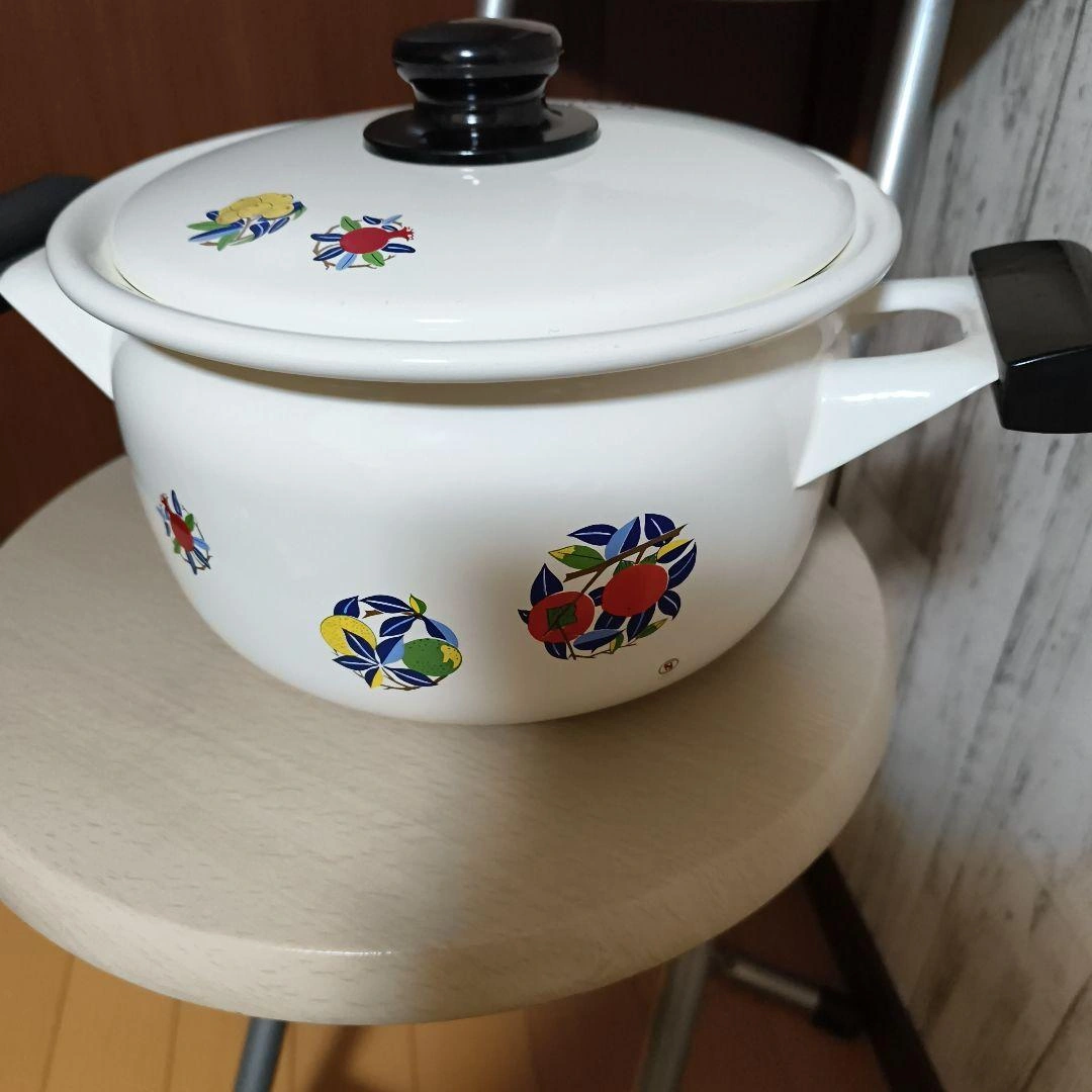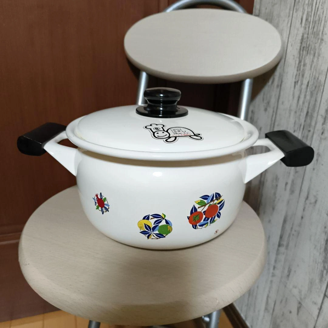 マルエスの「ネオ・エナ・デイリー」のレトロなホーロー両手鍋です。 * 未使用ですが、箱がないため多少の小キズがあります。 * サイズ: 直径20cm * 容量: 3L * 特徴: 空だき保証付き * 素材: ホーロー(金属にガラス質のコーティングを施したもの) * 特性: においがつきにくく、耐久性があり長く使える * ブランド: Maruesu
