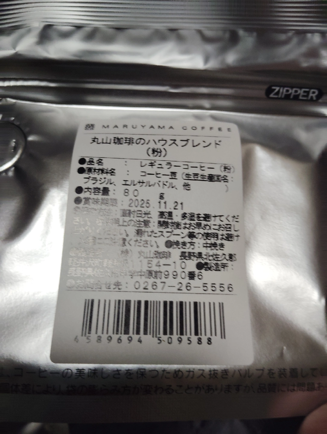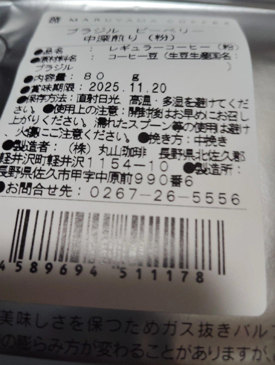 軽井沢で有名なコーヒー店丸山珈琲のコーヒー豆2点セットです 【情報】 ブランド:マルヤマコーヒー 種類:レギュラーコーヒー(粉) 内容量:80g 【状態】 新品未開封 【詳細】 ・賞味期限:2025.11.20, 2025.11.21 賞味期限が迫っている為お安く出品致しました。宜しくお願い致します。 袋の裏の写真をご覧ください。